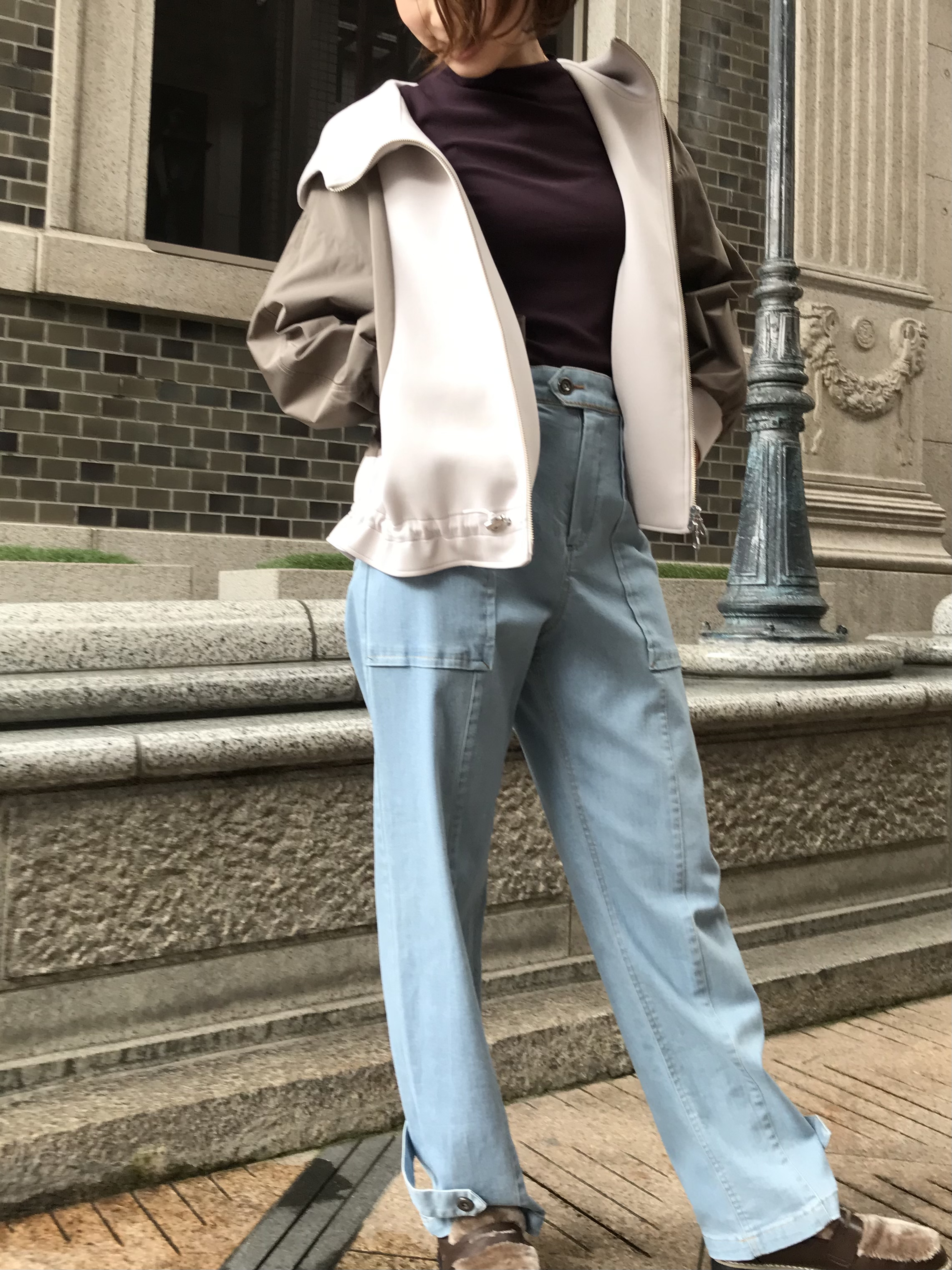 JACKET:¥21,780(税込) / bellus closetKNIT:¥12,100(税込) / C’EST MOIJEUBOTTOMS:¥14,850(税込) / ROBE変形袖がポイントのブルゾンはオーバーサイズのシルエットで袖のボタンを開け閉めすることで印象が変わ...