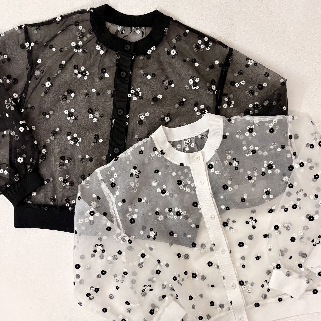 透け感のあるシアー素材を使用し、軽やかな印象に。