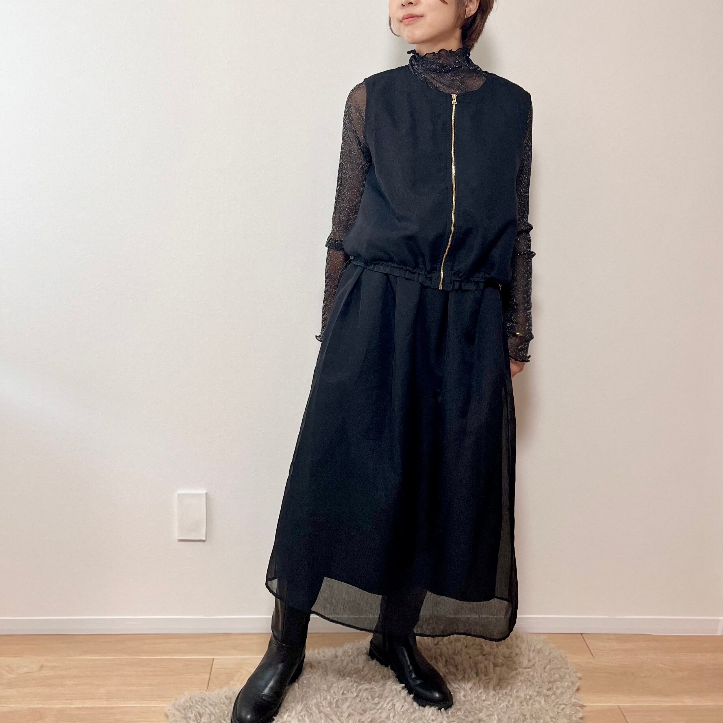 ◇ベスト・スカートセットアップは、ジップベストとフレアスカートの2点セットで、着回し力抜群のアイテムです