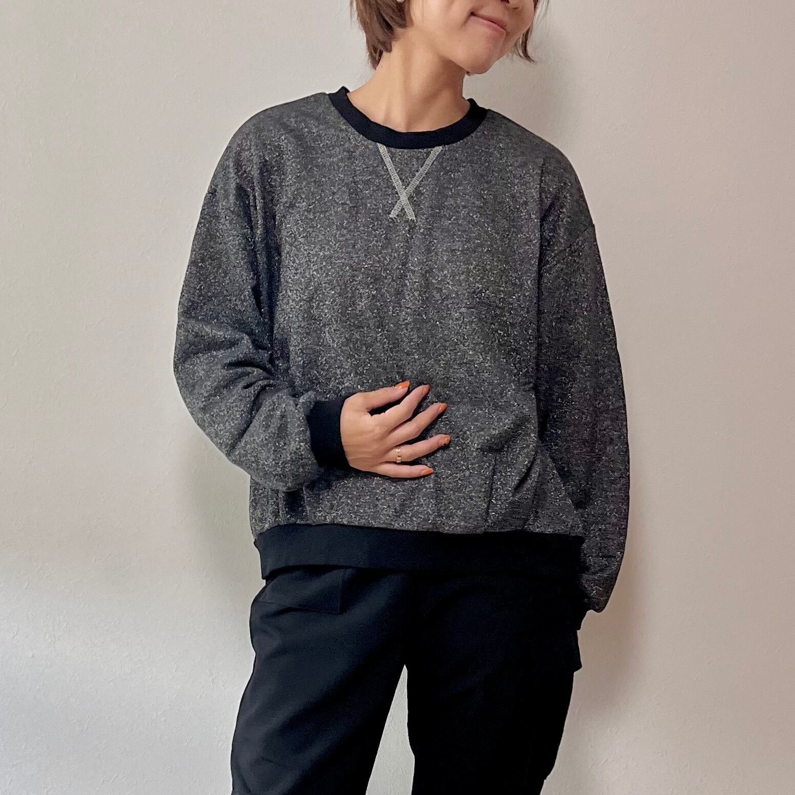 ◇上品なラメデザインが施された、ラメトレーナープルオーバー。リラックス感のあるゆったりとしたシルエットがトレンド。