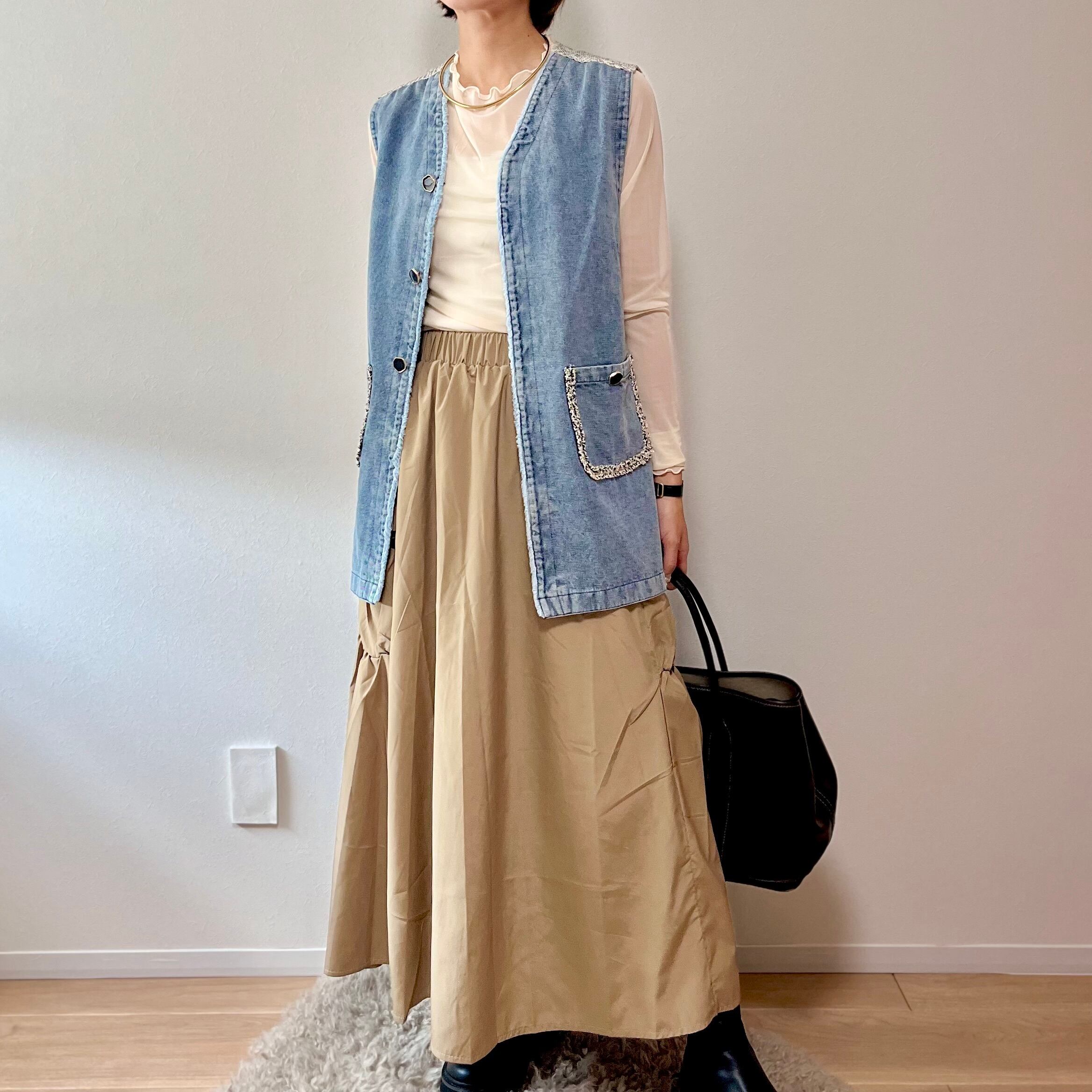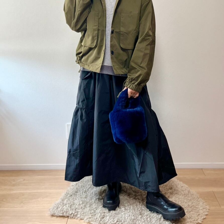 ◇自然と広がるフレアシルエットが歩くたびに揺れ、カジュアルな中に女性らしさがあるデザインです。