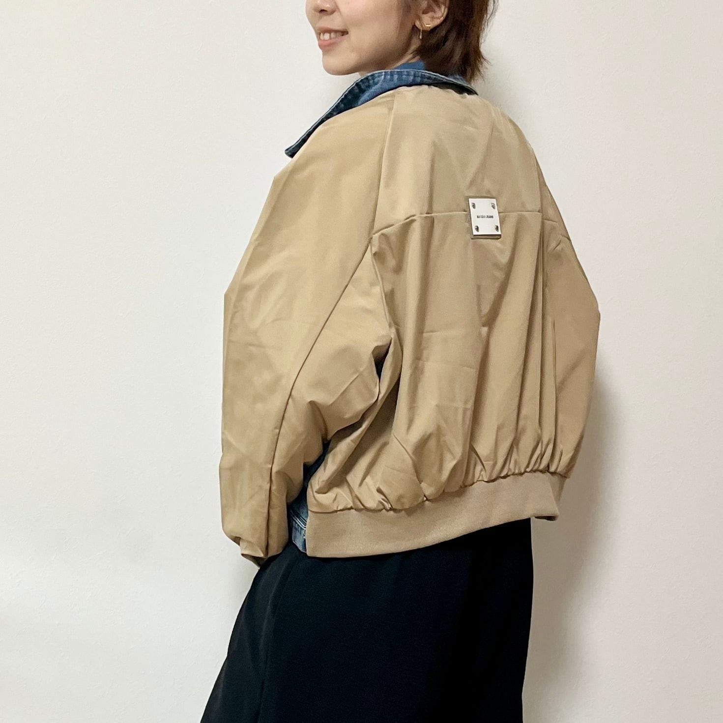 ◇前はデニムジャケット、バックスタイルはMA-1のようなデザイン。ポリエステルのハリ感のある軽やかな素材と組み合わせることで、デニムジャケットですが軽い。着用感も軽やかで動きやすいです。