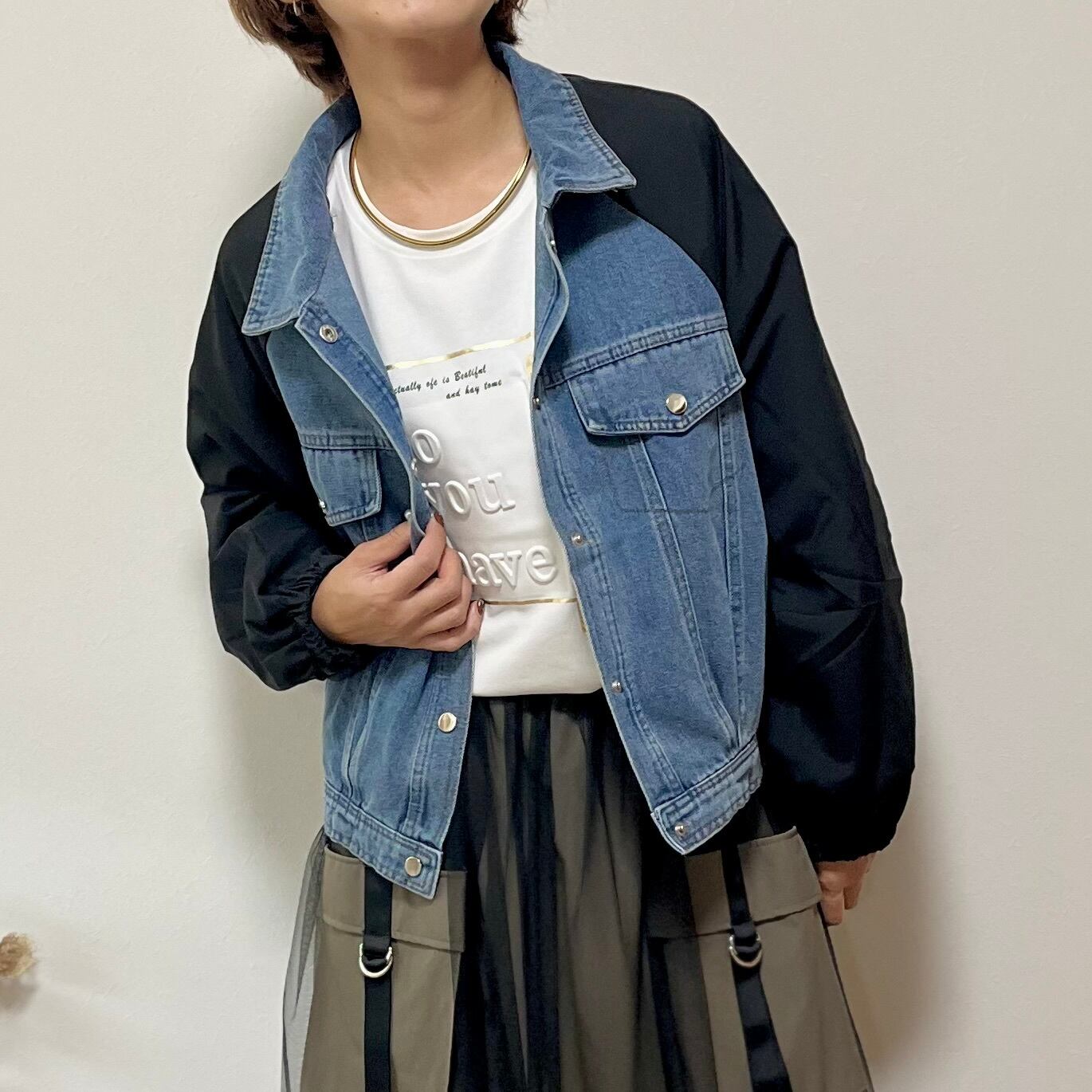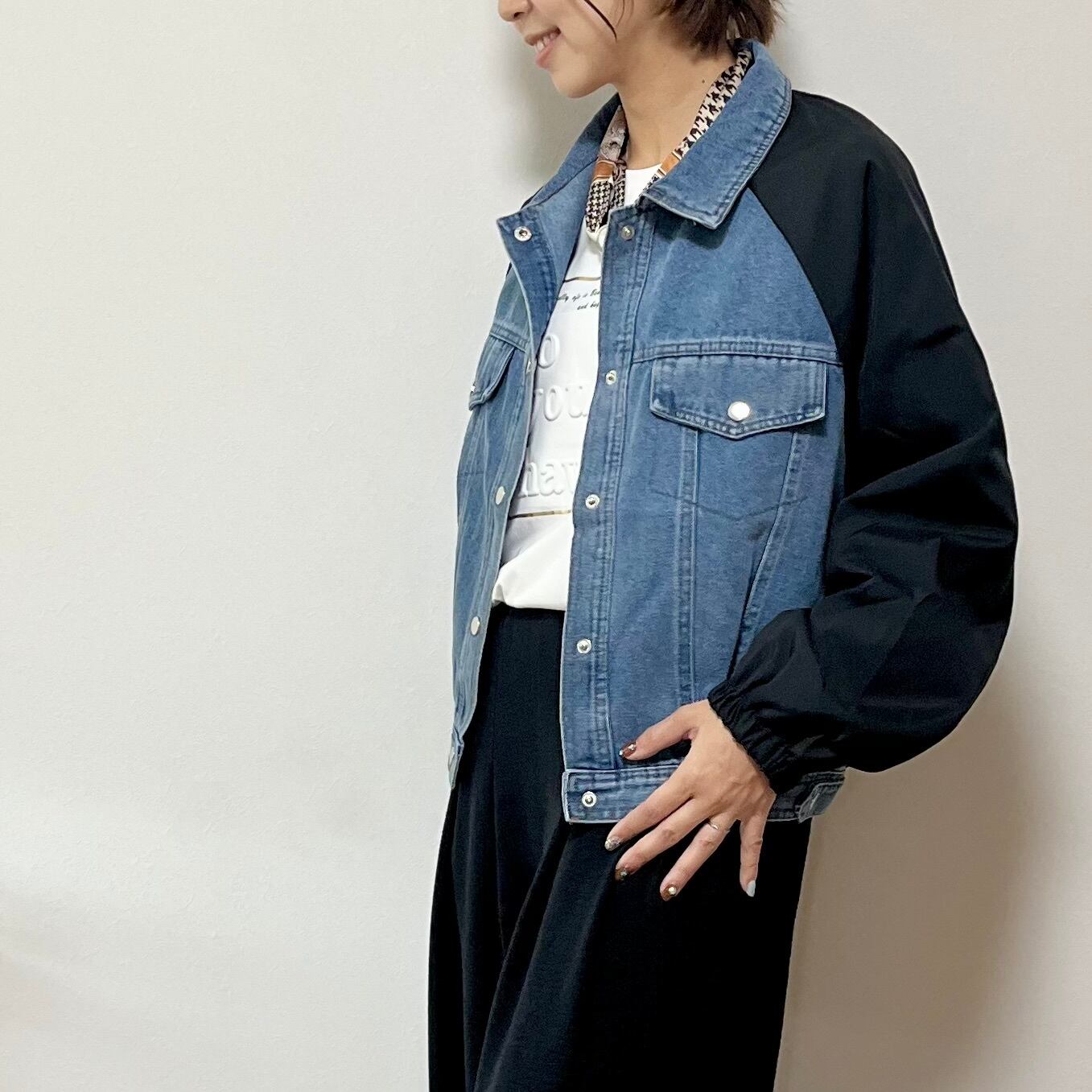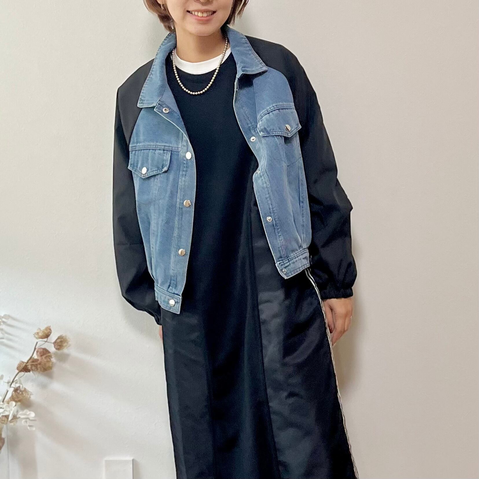 ◇異素材ドッキングのデニムジャケット。このアイテム一枚で、個性が光る、デザインが魅力的なアイテムです。