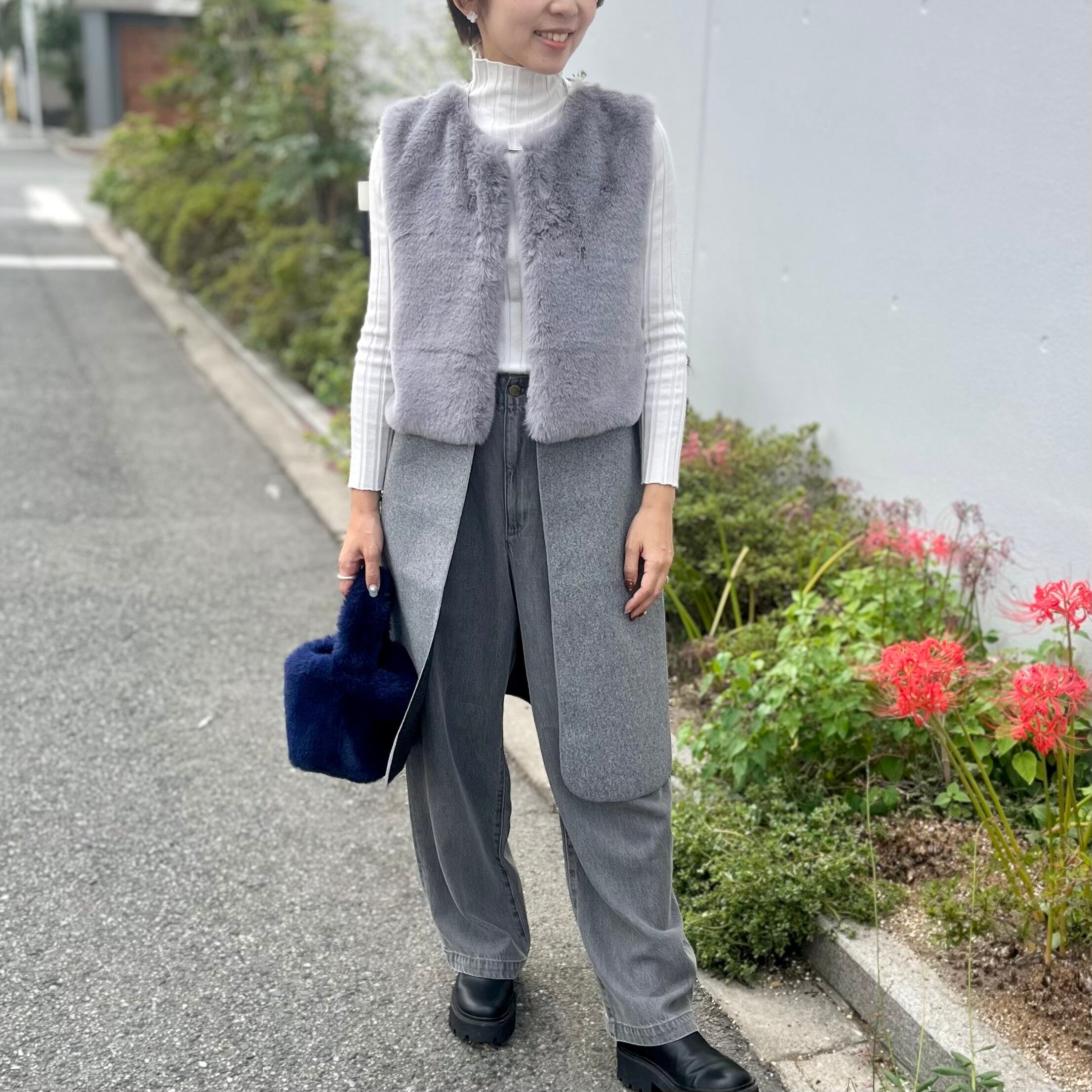 ファーロングジレ / V・I・A・N・T・E ヴィアンテ サザン アウター トップス ベスト ジレ 羽織り ロング丈 長め 前開き 無地 ノースリーブ ファー エコファー ウール ドッキング 異素材 レイヤード 重ね着 ゆったり スリット ポケット フリーサイズ M L 着痩せ 細見え 45521 | poppet online◇instagramで商品紹介中♪
