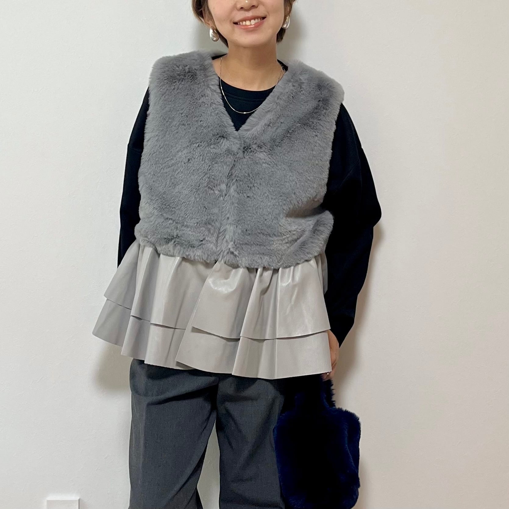 ◇上部にはふわふわのエコファー、下部には上質なエコレザーの異素材ドッキングベスト。