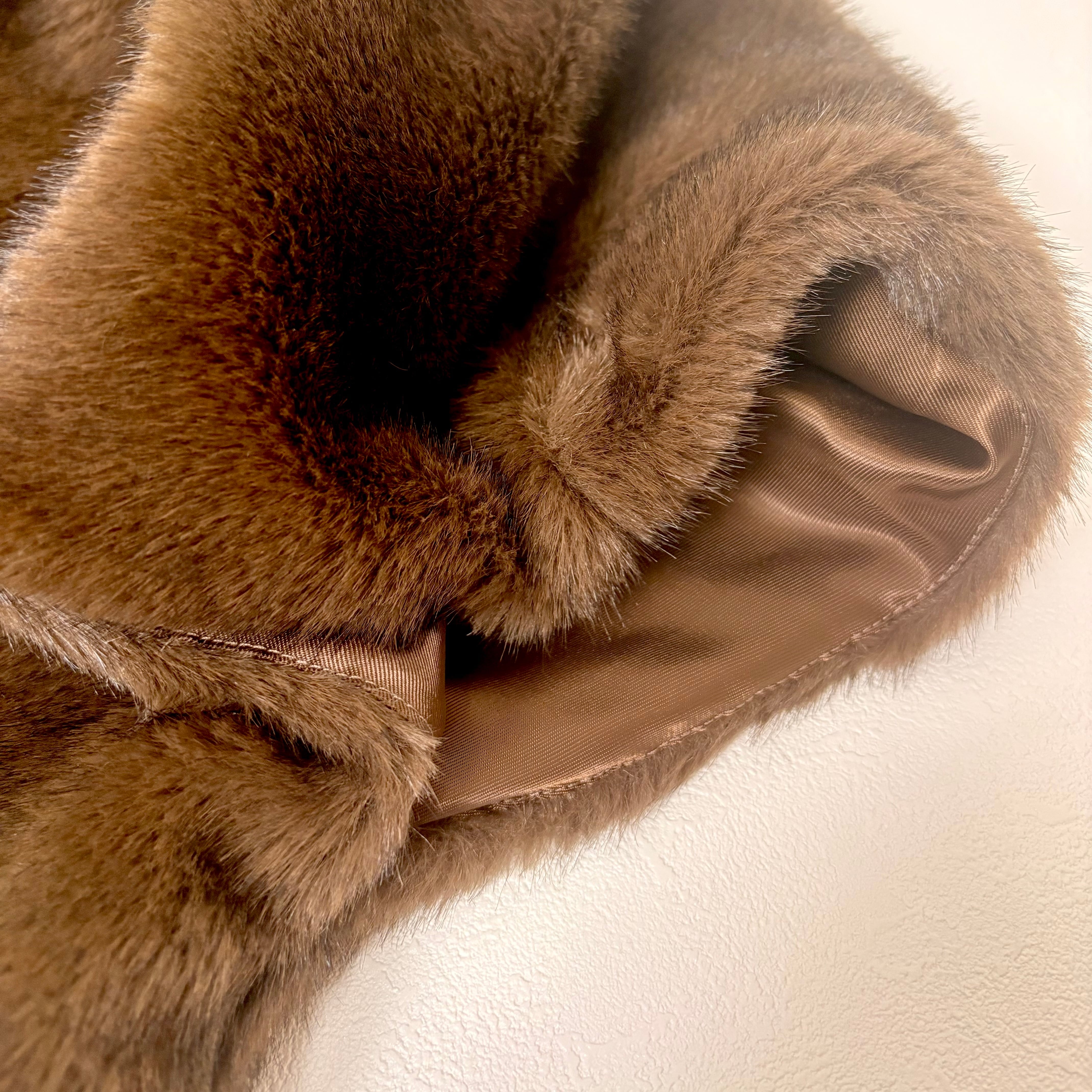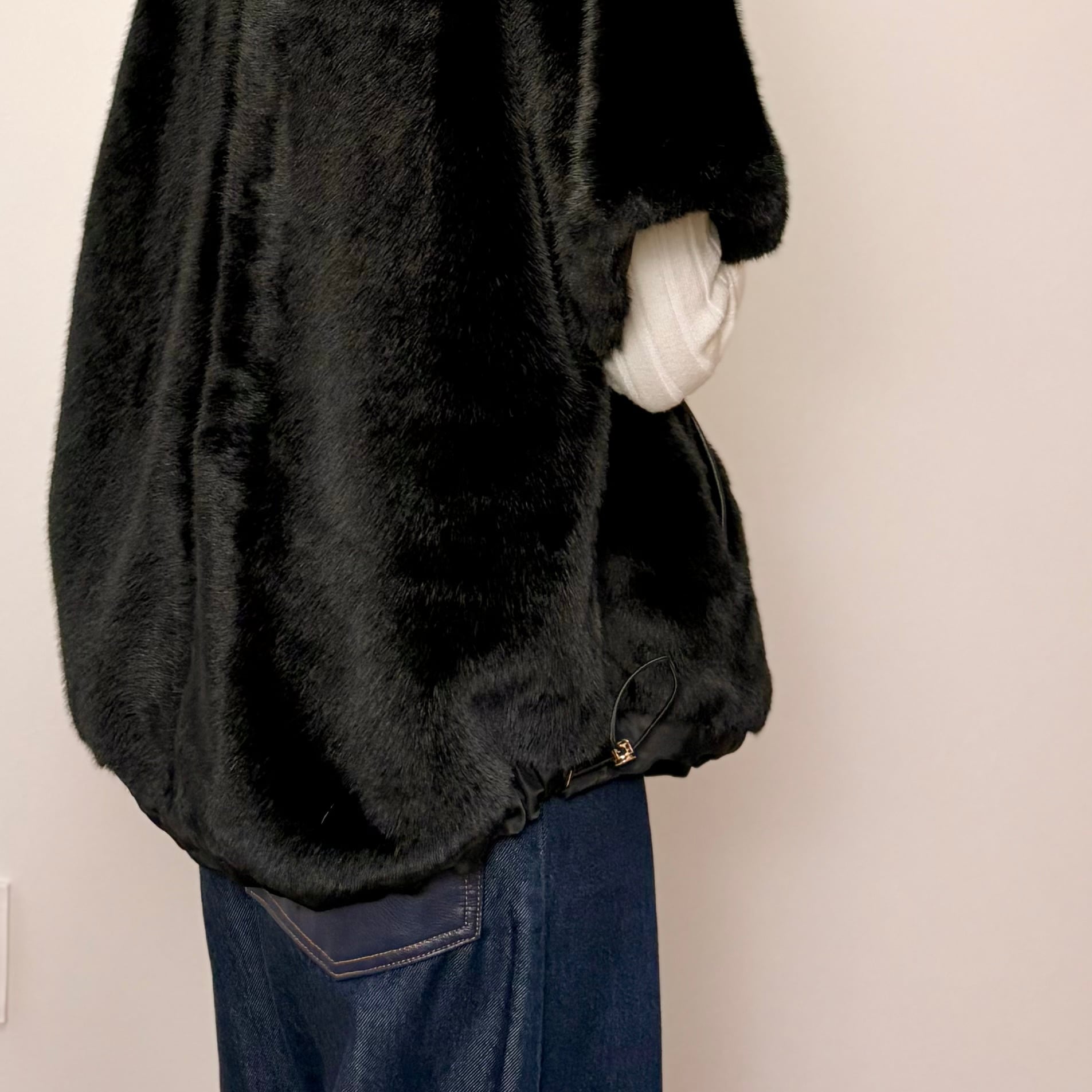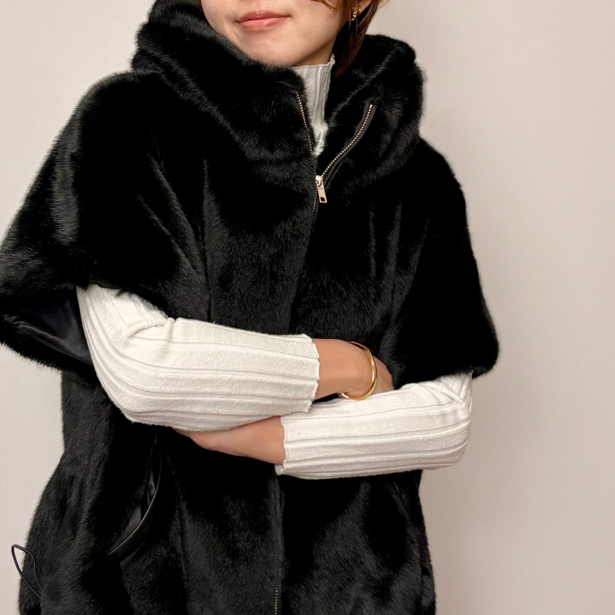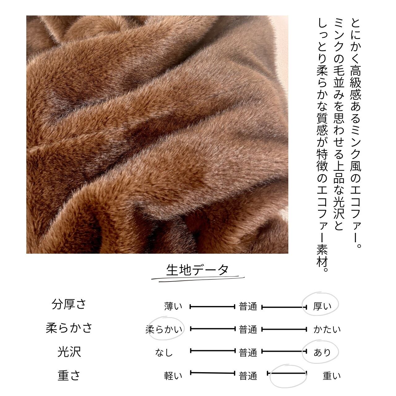 ◇ミンクの毛並みを思わせる、上品な光沢としっとり柔らかな質感が特徴のエコファー素材のジャケットベストです。