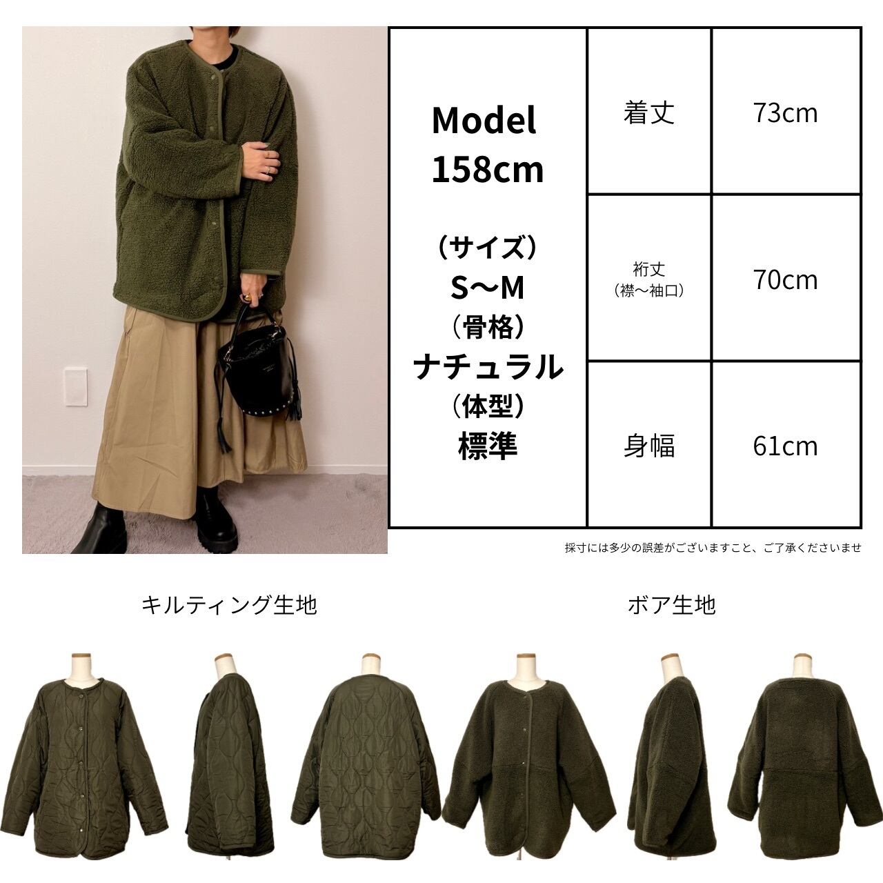 着丈 73cm / 身幅 61cm / 裄丈(襟〜袖口)70cm