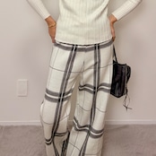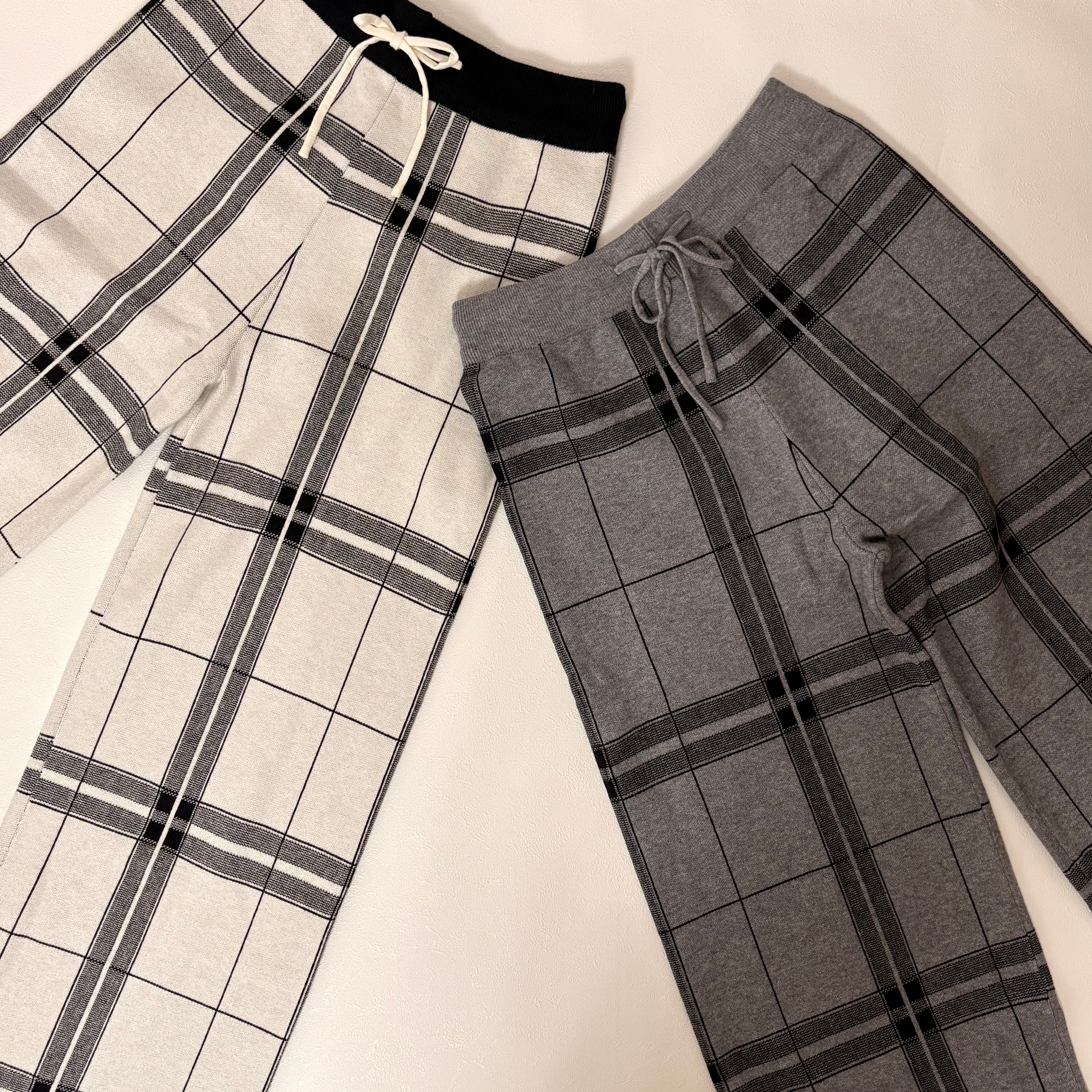 ◇冬のコーディネートをおしゃれにしてくれるチェック柄。落ち着いたカラーの組み合わせがコーディネートしやすいニットパンツです。