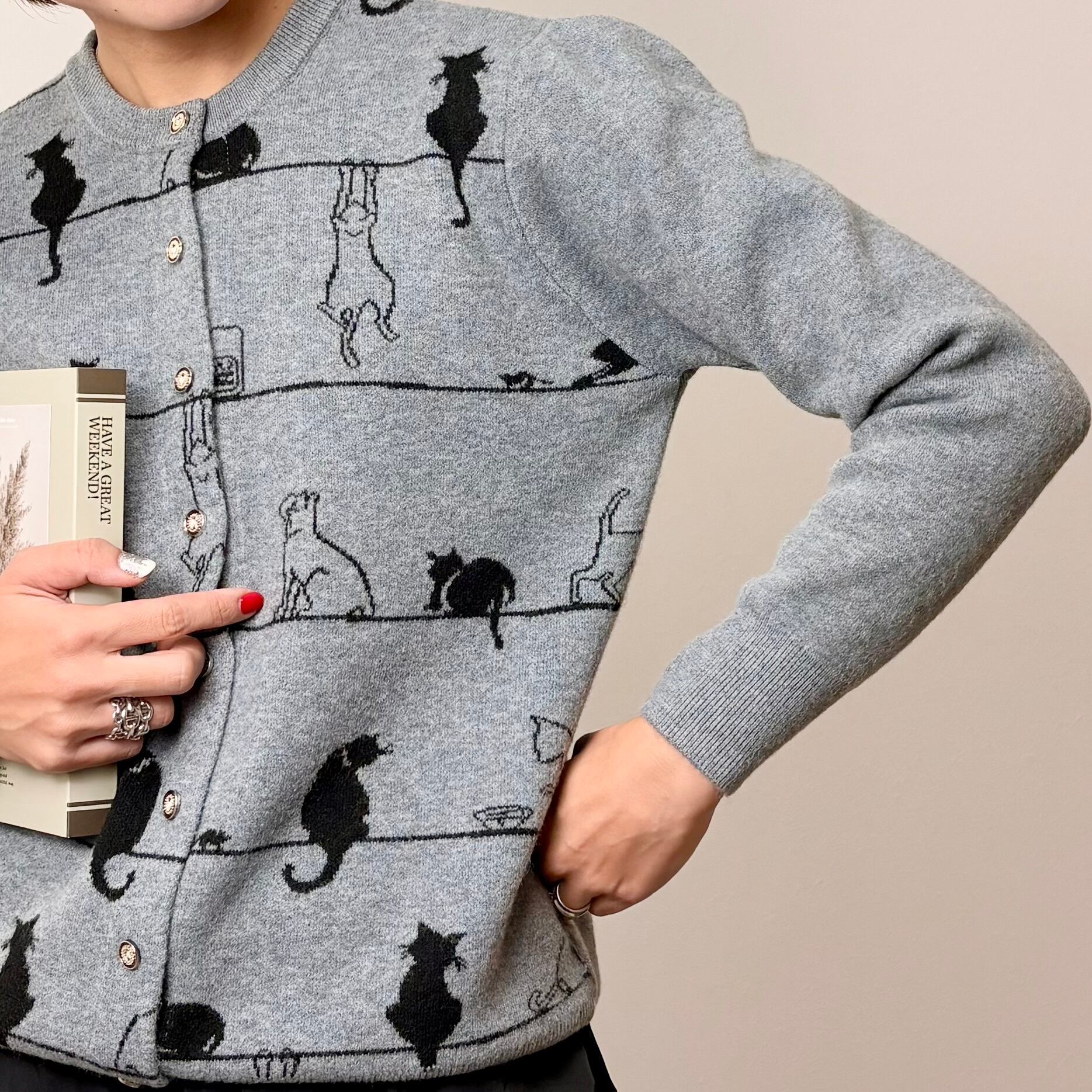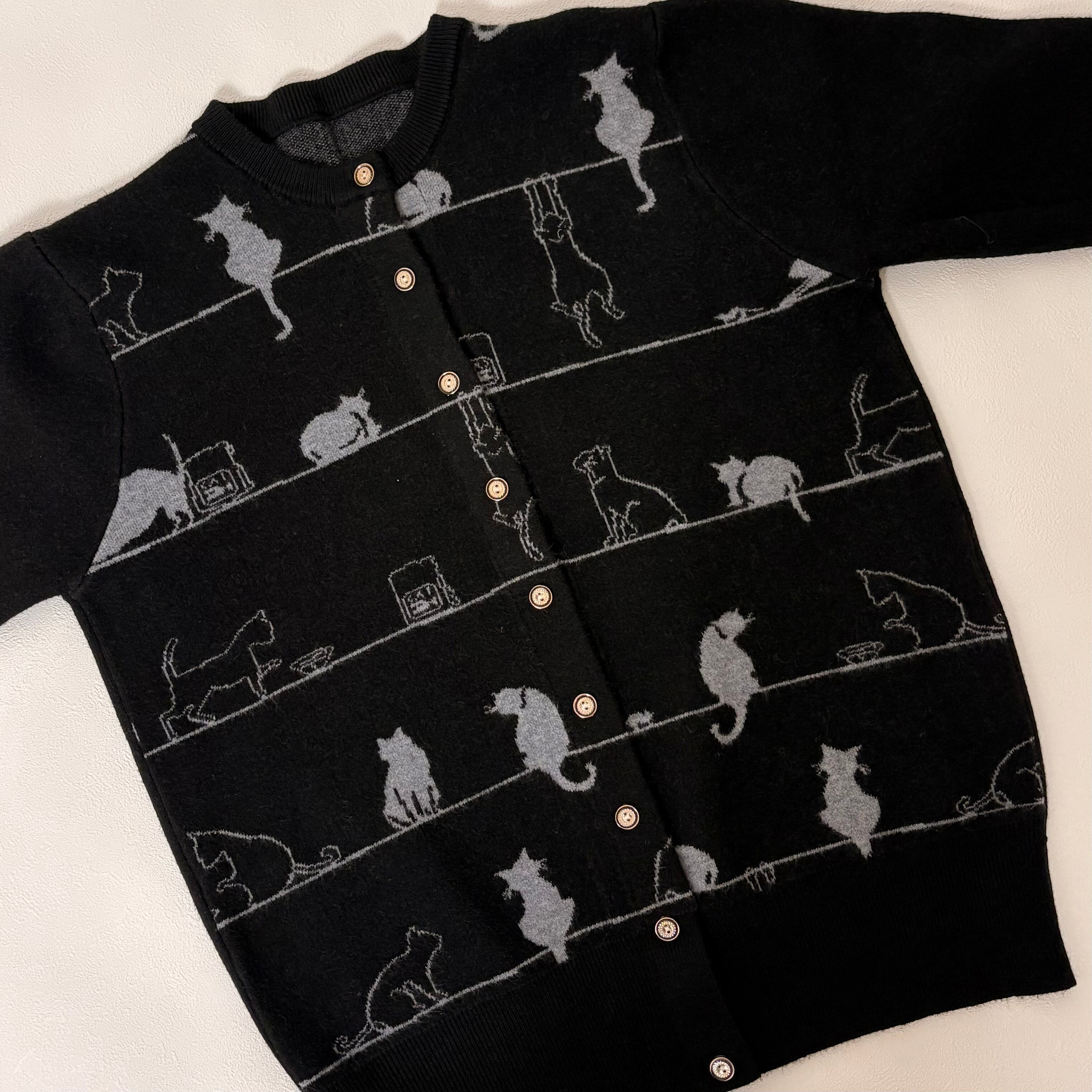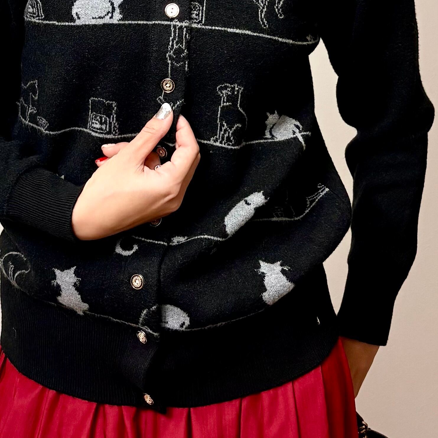 ◇愛らしいねこデザインが特徴的な、ふわふわニットカーディガンです。ねこ好き、動物好きな方にはたまらないおしゃれで、レトロな雰囲気を楽しむことができます!