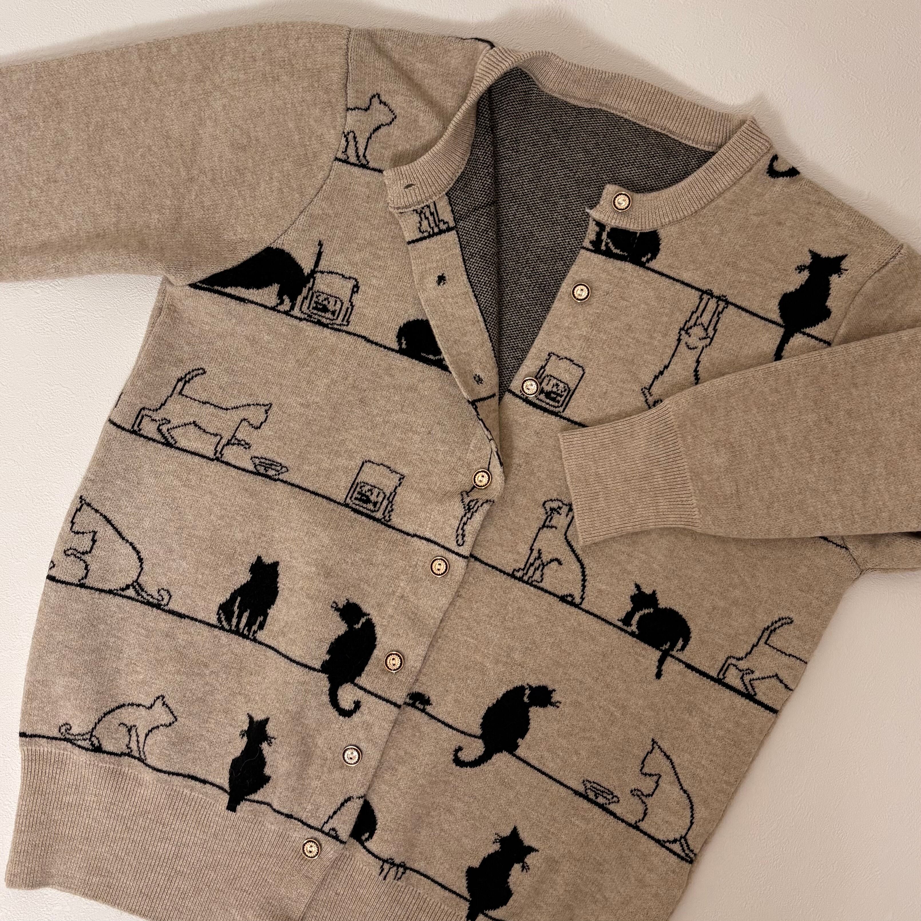 ねこデザインニットカーディガン / トップス カーディガン ニット ふわふわニット ねこ キャット 猫 動物 レトロ 金具ボタン デザインボタン ゆったり 着痩せ 伸びる 気持ち良い 前開き 3カラー ベージュ キャメル ブラウン 茶色 ブラック 黒 くろ グレー45986 | poppet online◇instagramで商品紹介中♪
