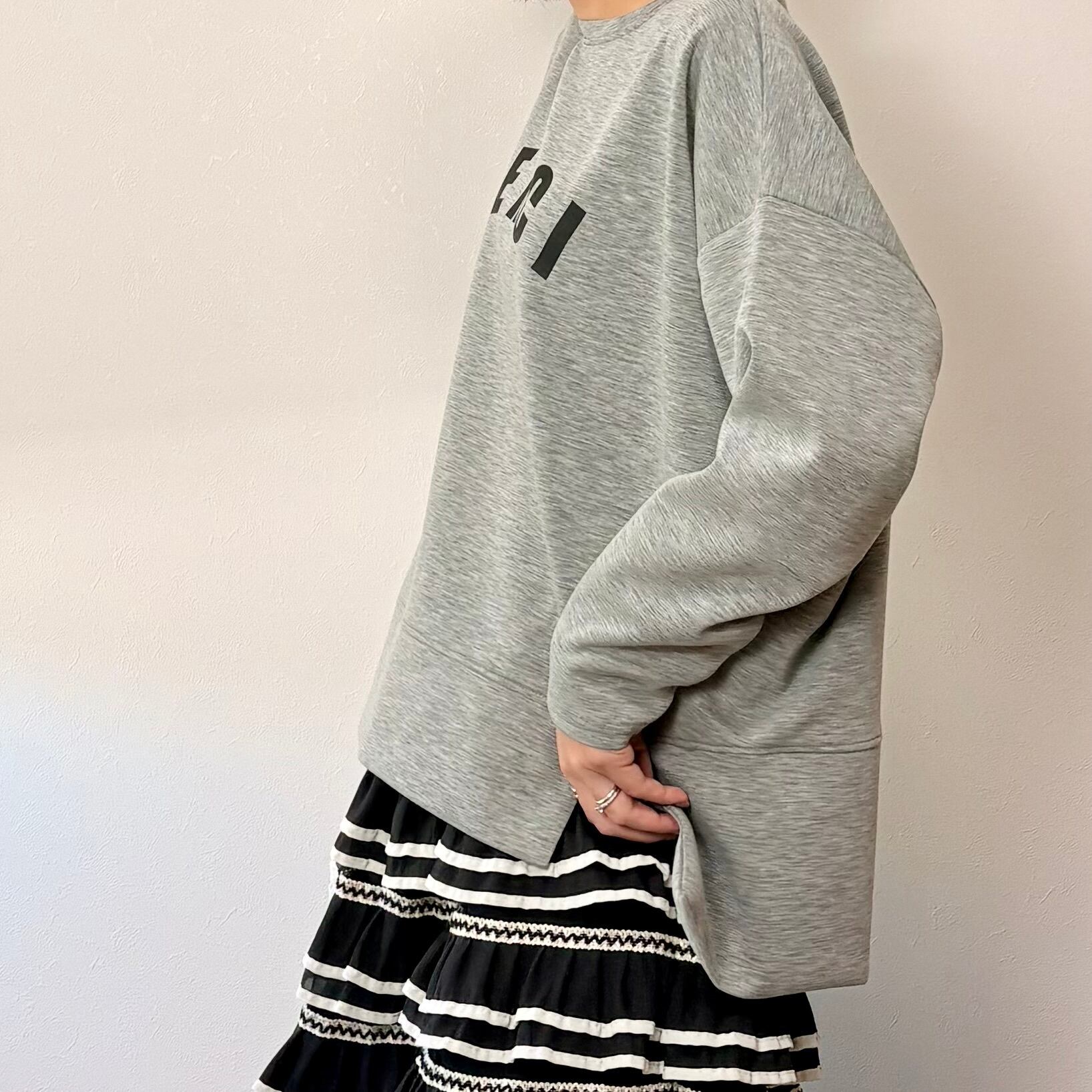 オーバーショルダーのゆったりとしたサイズ感。