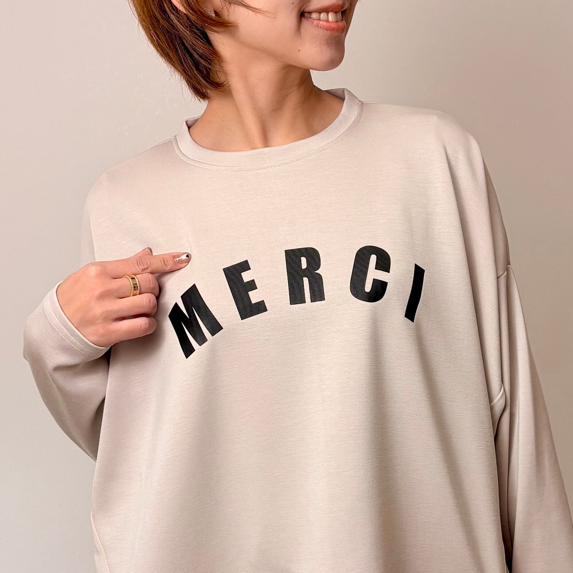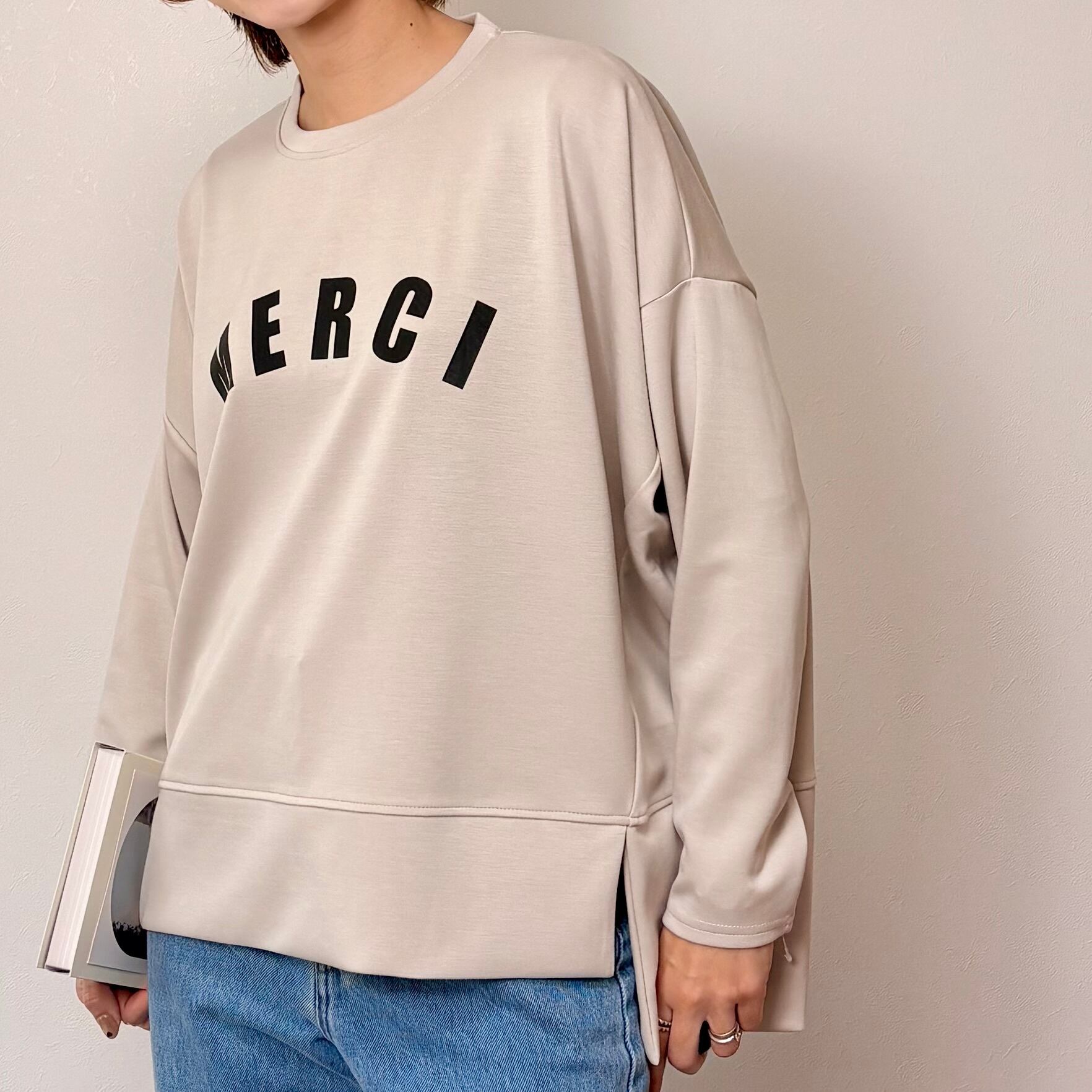 メルシートップス / トップス 長袖 春トップス ボンディング カットソー スウェット トレーナー きれいめ カジュアル 立体シルエット ロゴ 切替 大人 フリーサイズ 16808