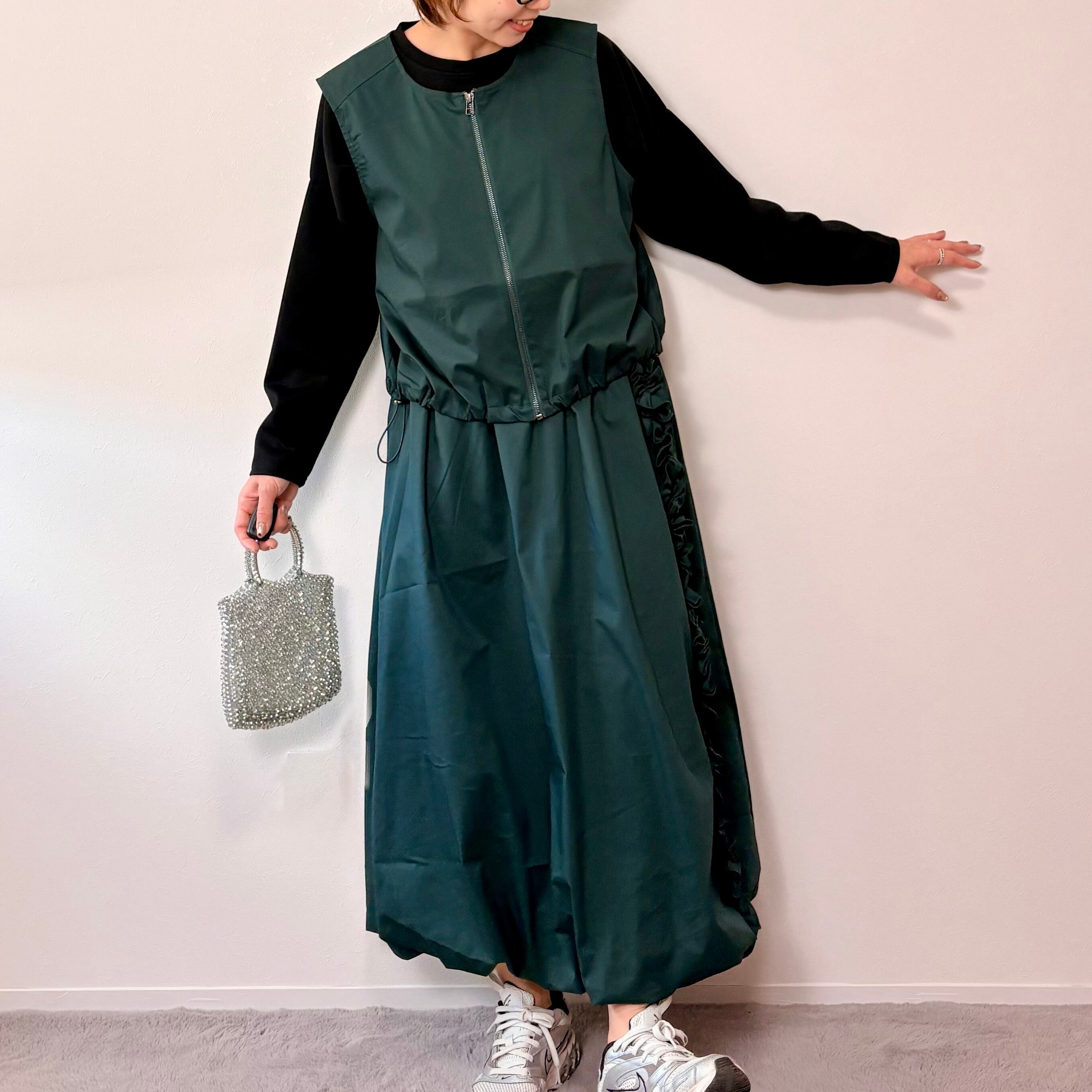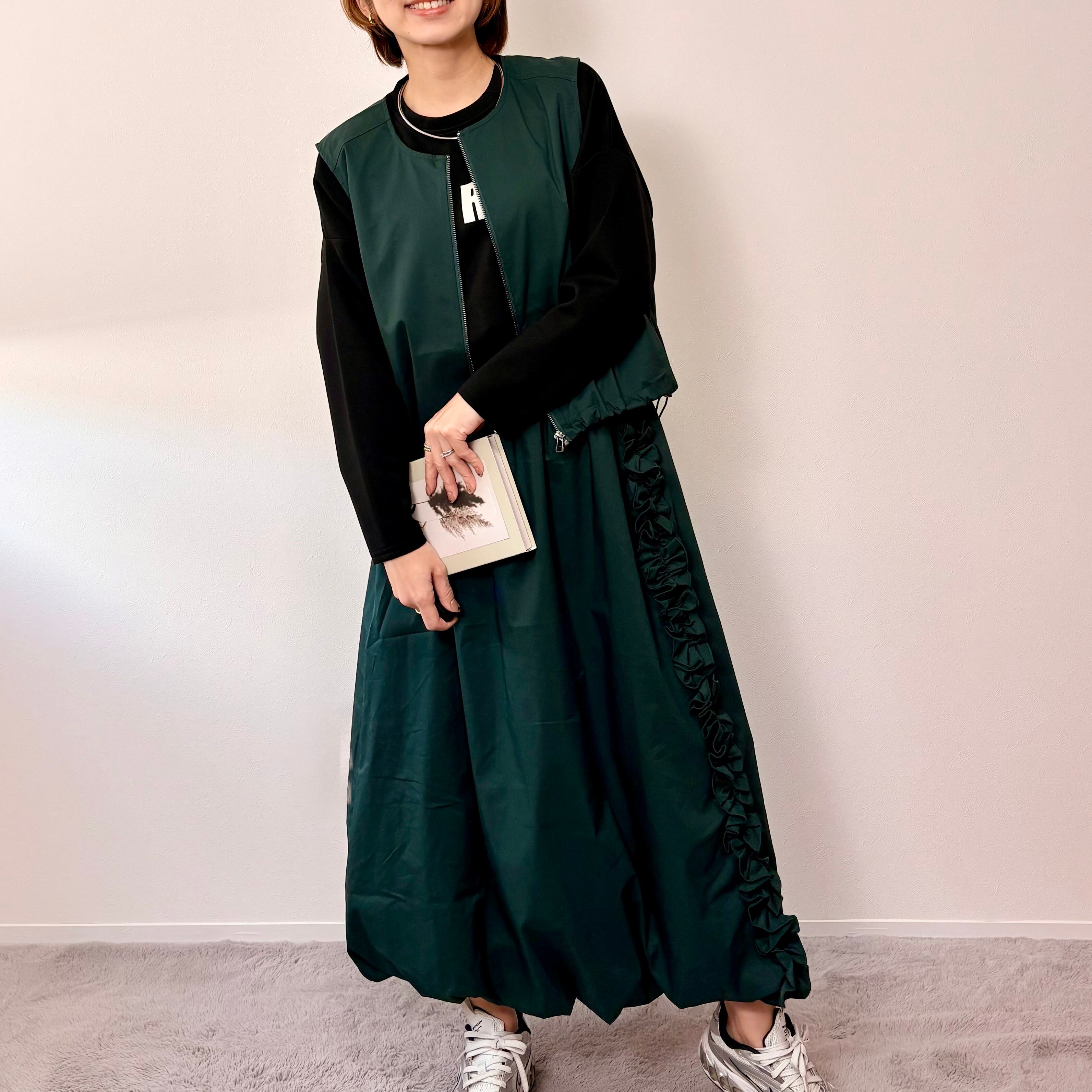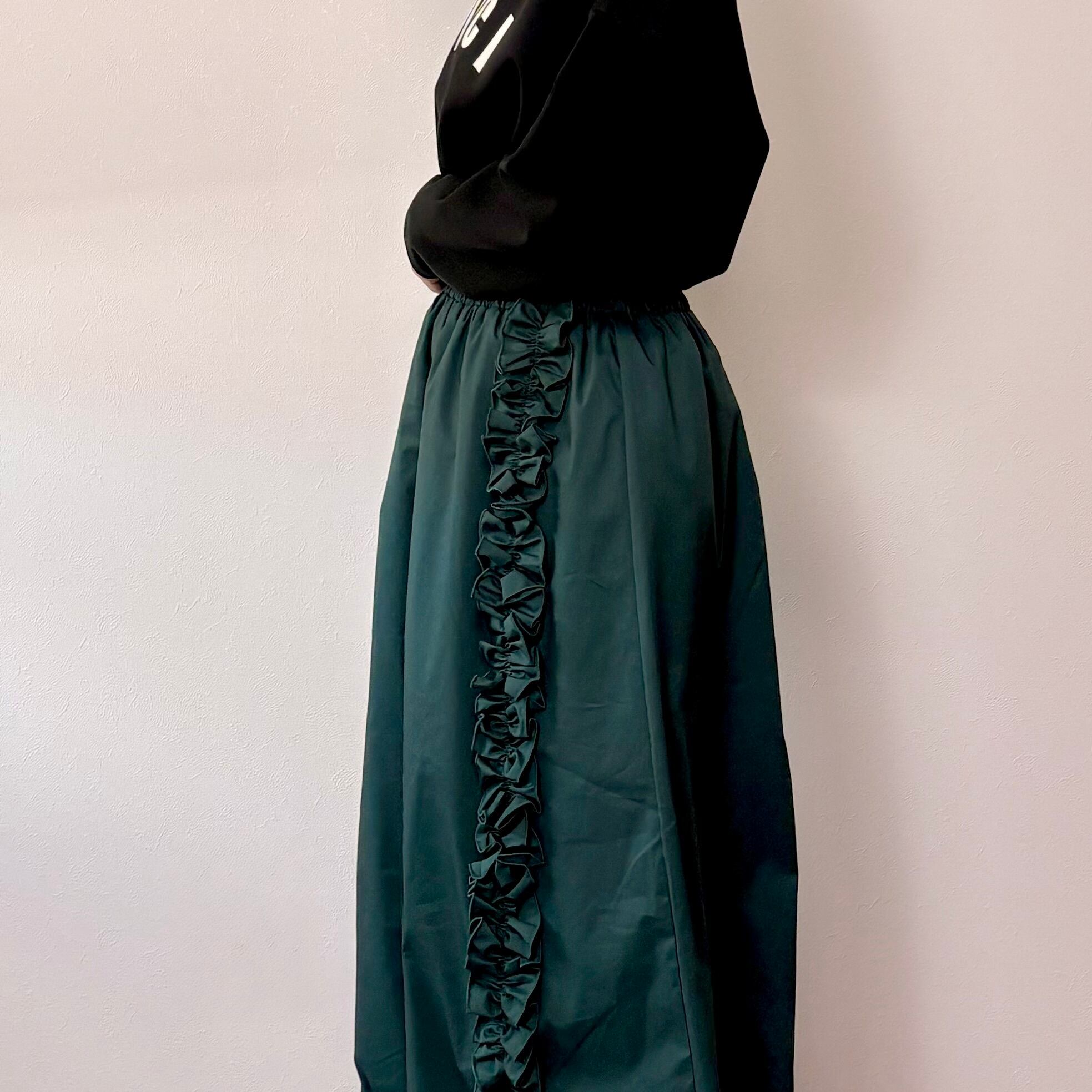 サイドフリルラインバルーンスカート / 【セットアップ対応】スカート 春ボトム ナイロンライク ウエストゴム ゆったり ボリューミー ロング マキシ フリルデザイン カジュアル 大人 可愛い フリーサイズ レディース セット コーディネート 56804