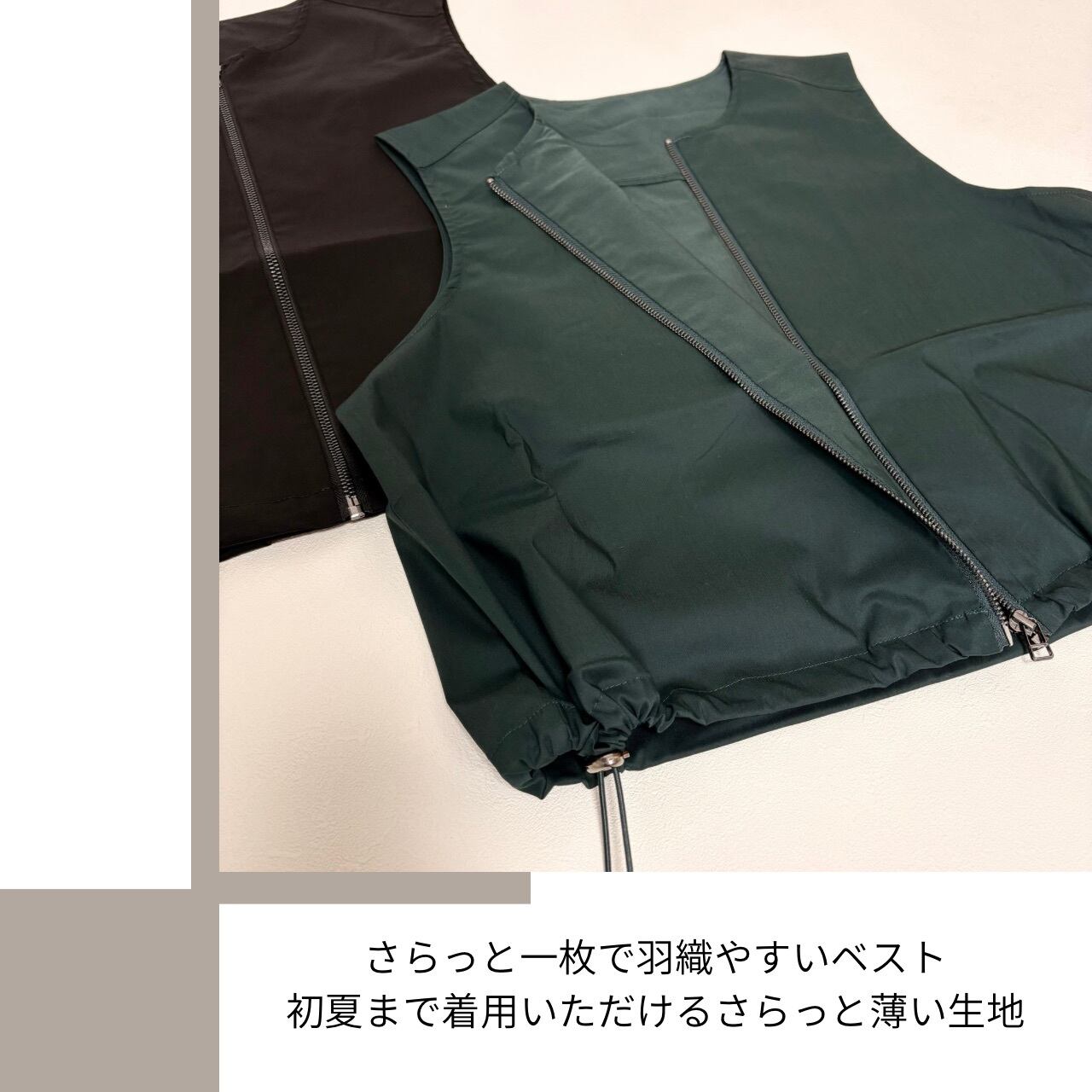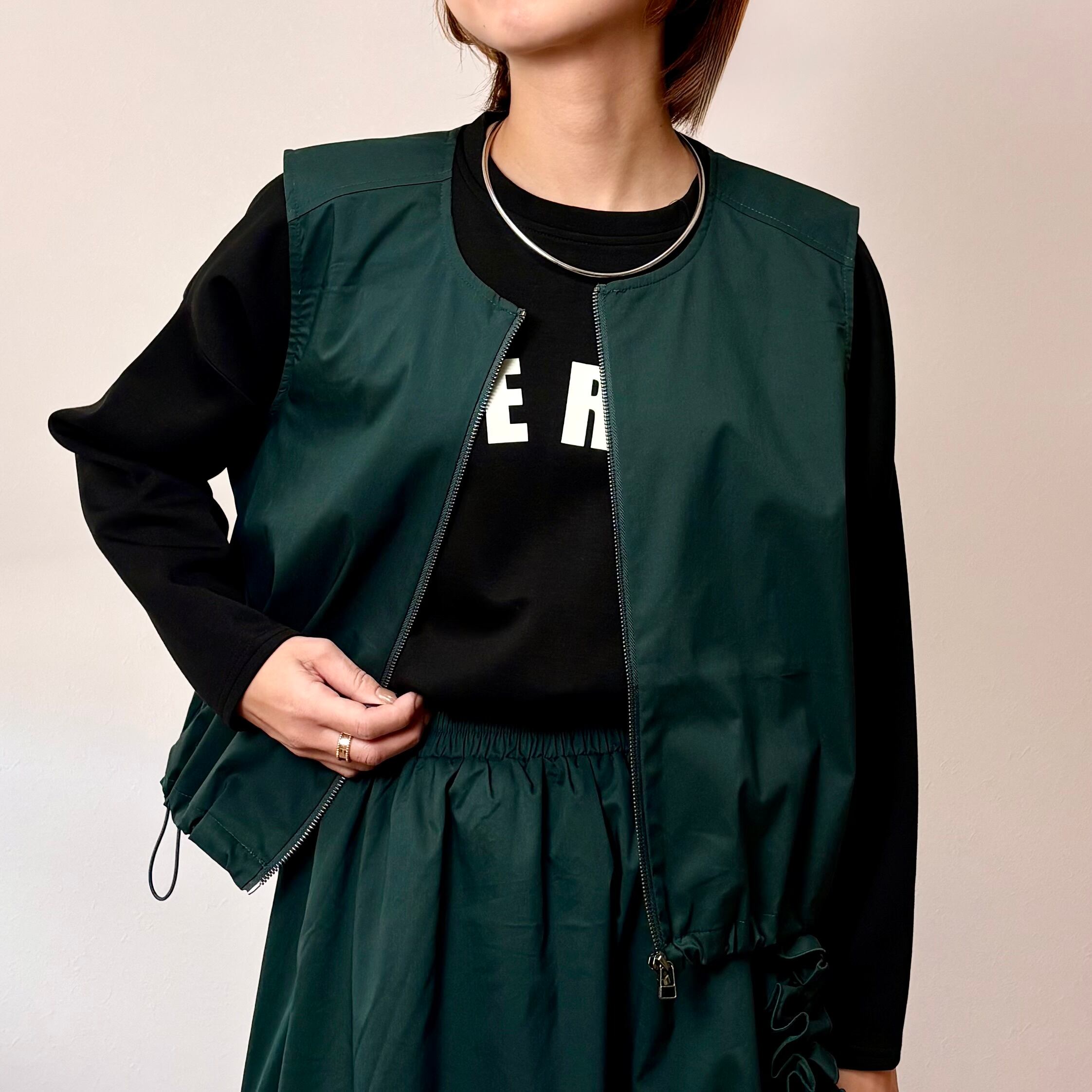 ノーカラージップベストとバルーンスカートを組み合わせた