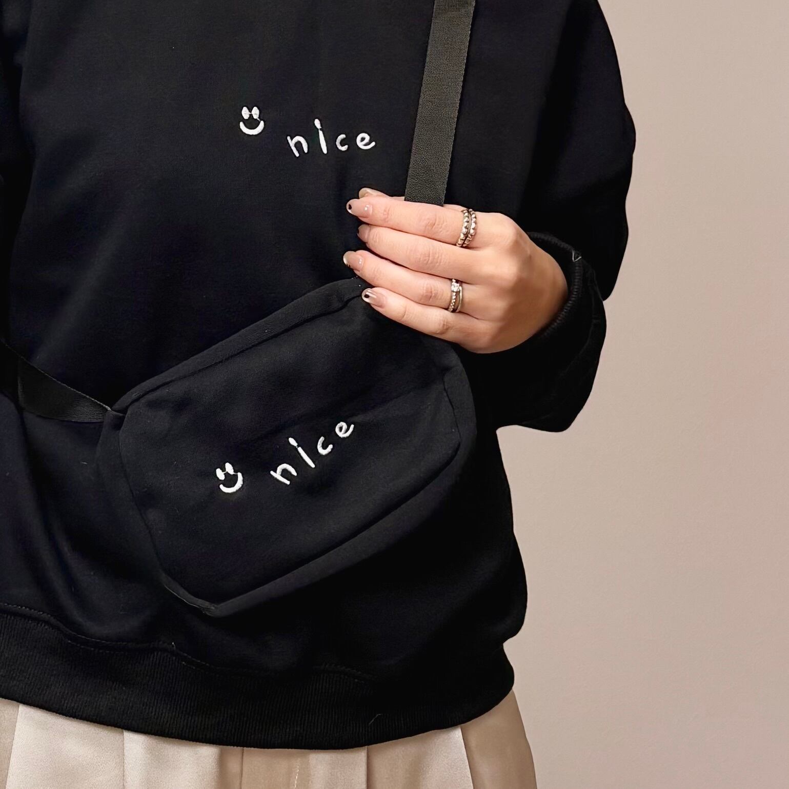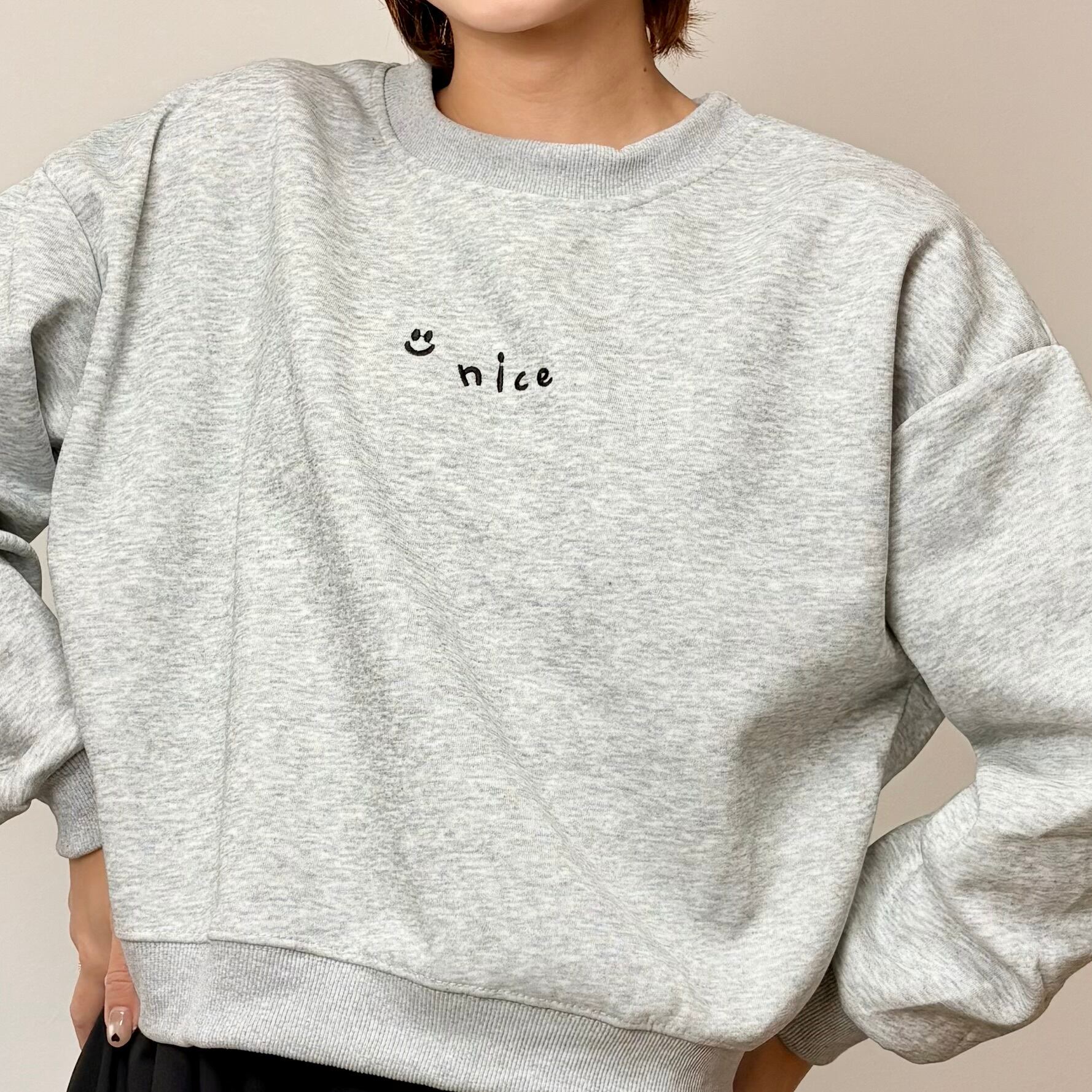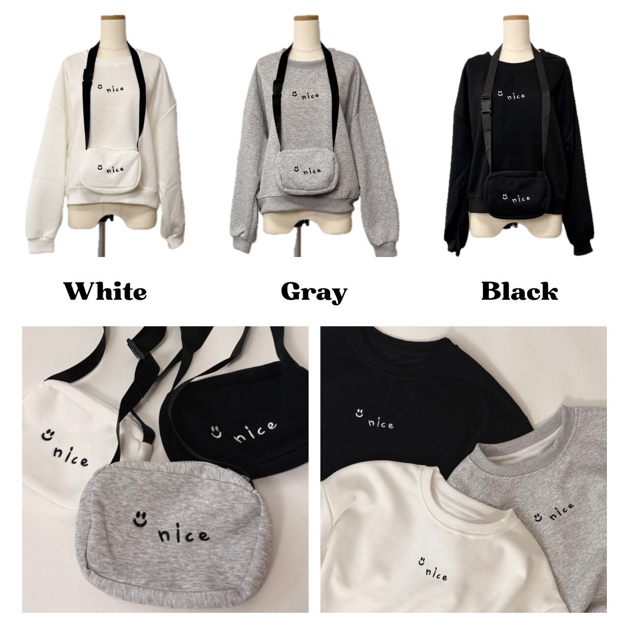 ポシェット付きニコちゃんトレーナー / レディース トップス スウェット 長袖 2点セット バッグ付き カバン付き シンプル ロゴ カジュアル フリーサイズ 30代 40代 50代 春 秋 16803