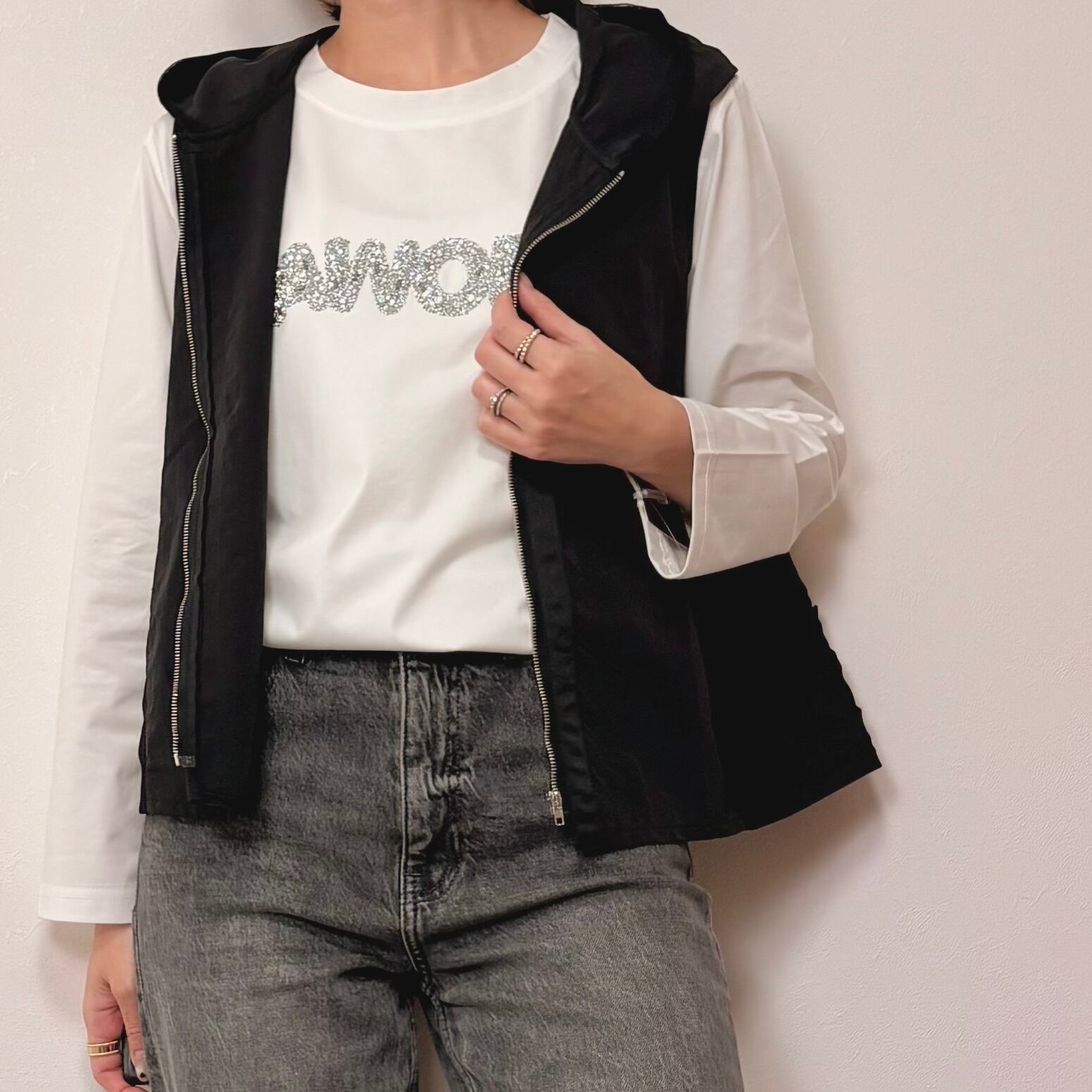 レイヤードしやすいサイズ感のベストで、インナー次第でロングシーズン活躍します。