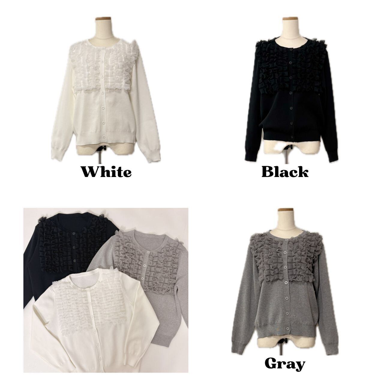 立体感のあるフリルを贅沢にあしらった、主役級カーディガン。