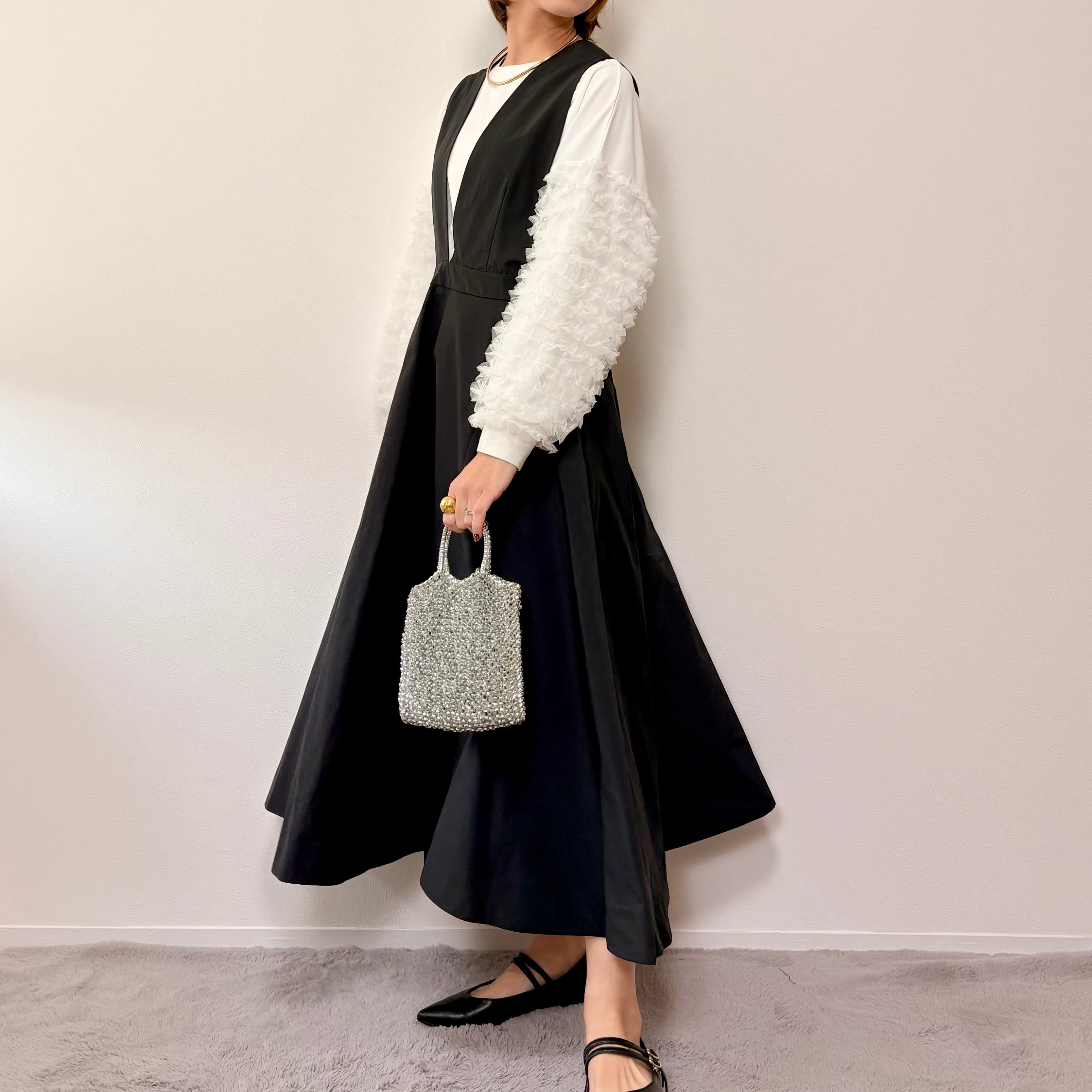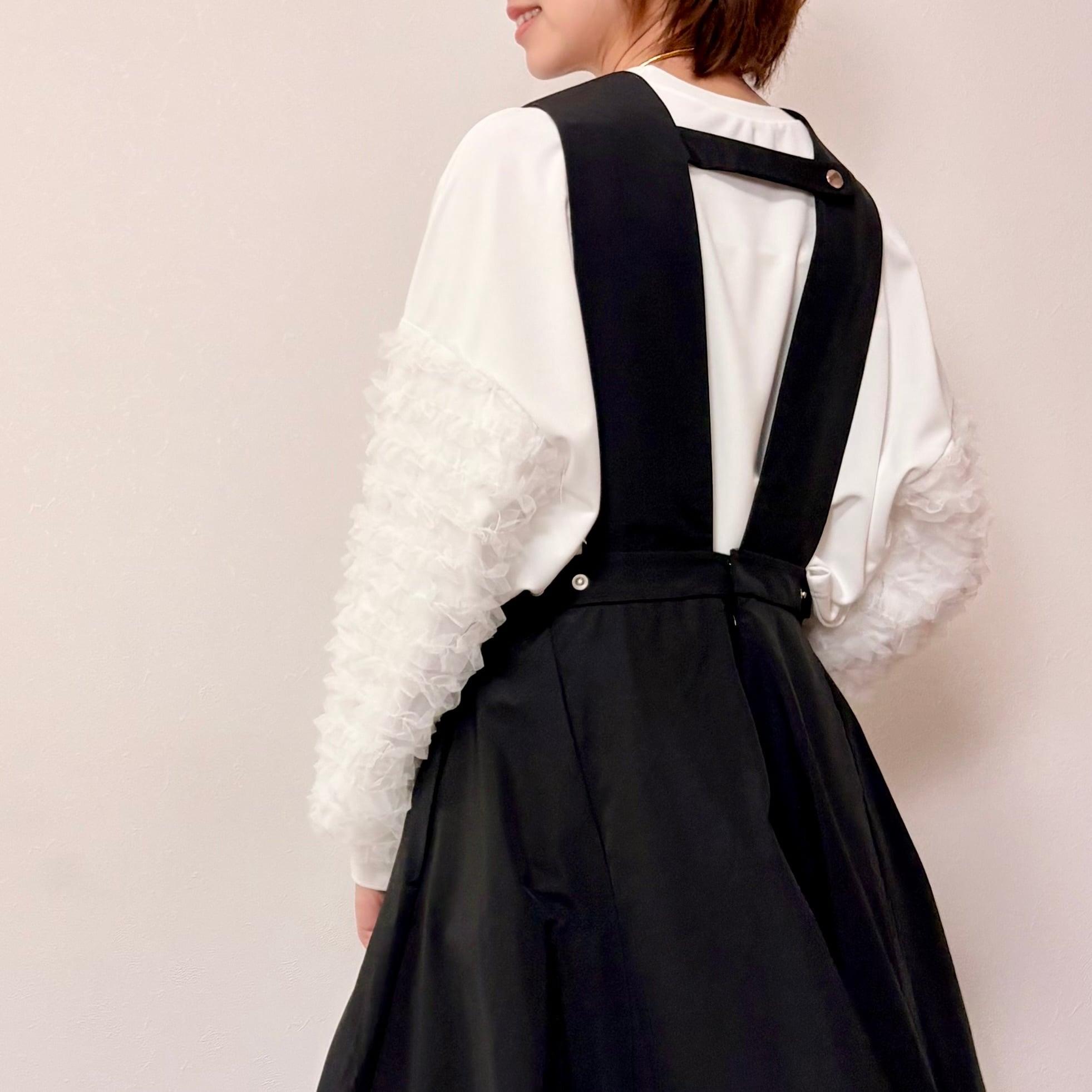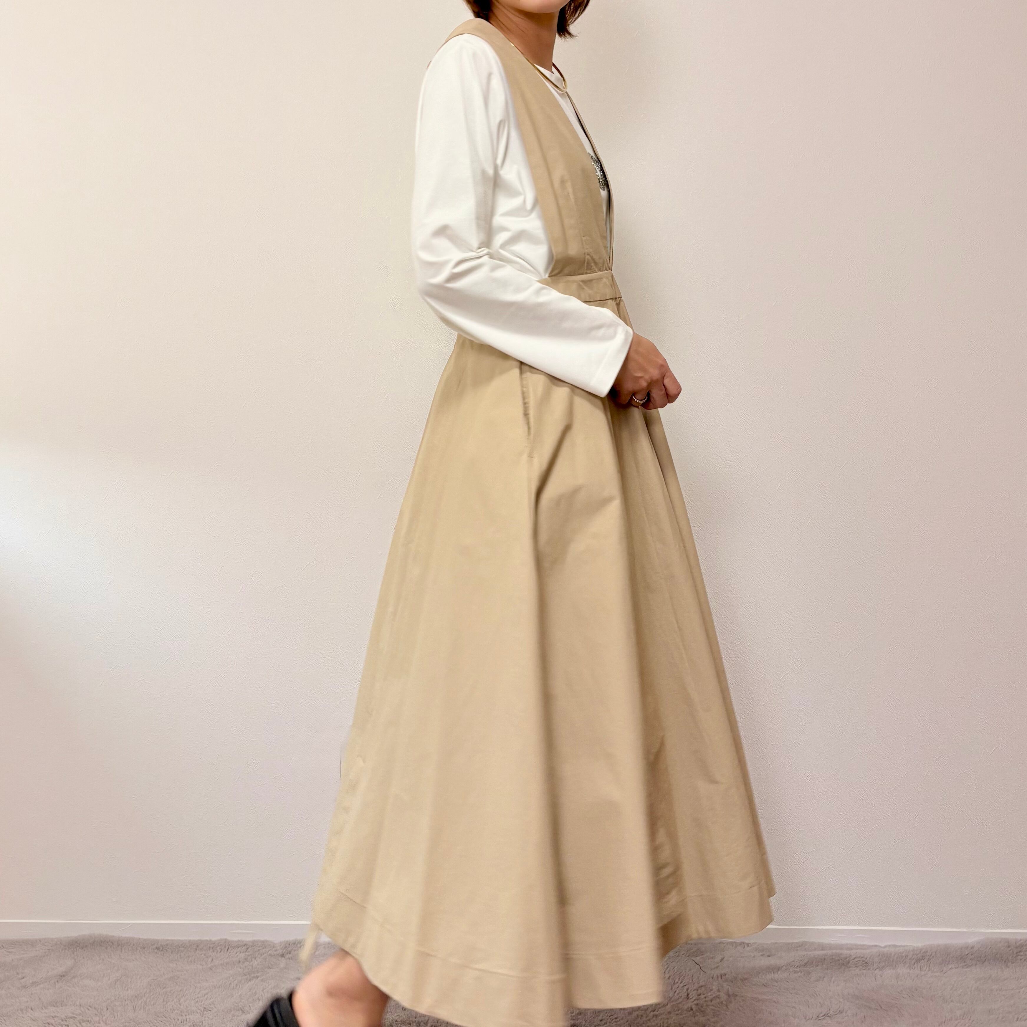 インナー次第で雰囲気を変えられる、着回し力の高いジャンパースカートです。