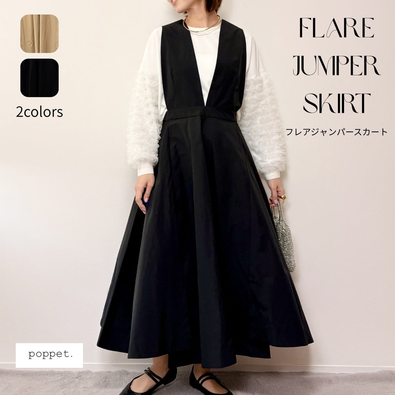 【NEW】フレアジャンパースカート / piacere ピアッチェーレ レディース ワンピース ウエスト調整 深Vネック ロング フレア スリット Aライン 大人 きれいめ 体型カバー ベージュ ブラック フリーサイズ 30代 40代 50代 春 秋 P86003