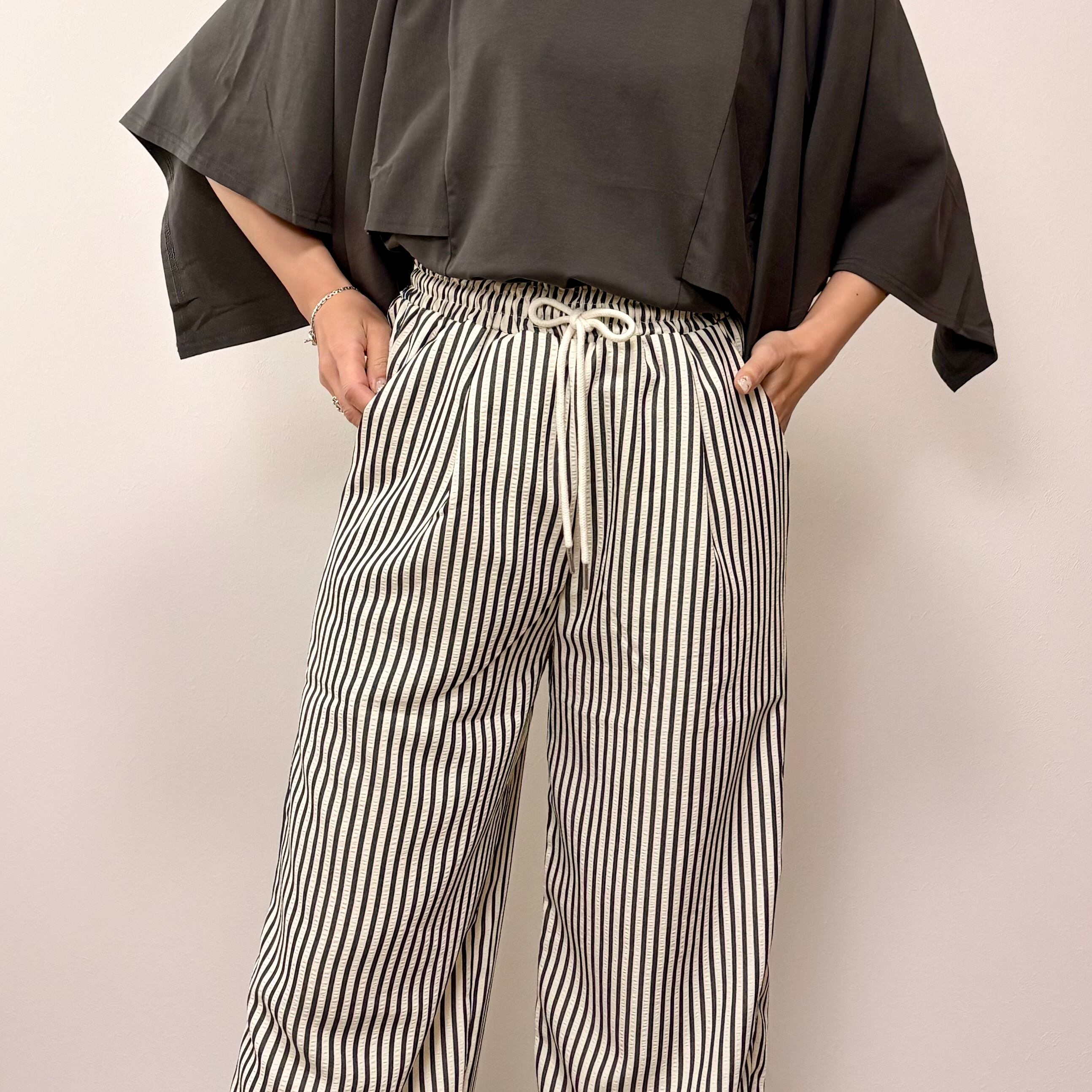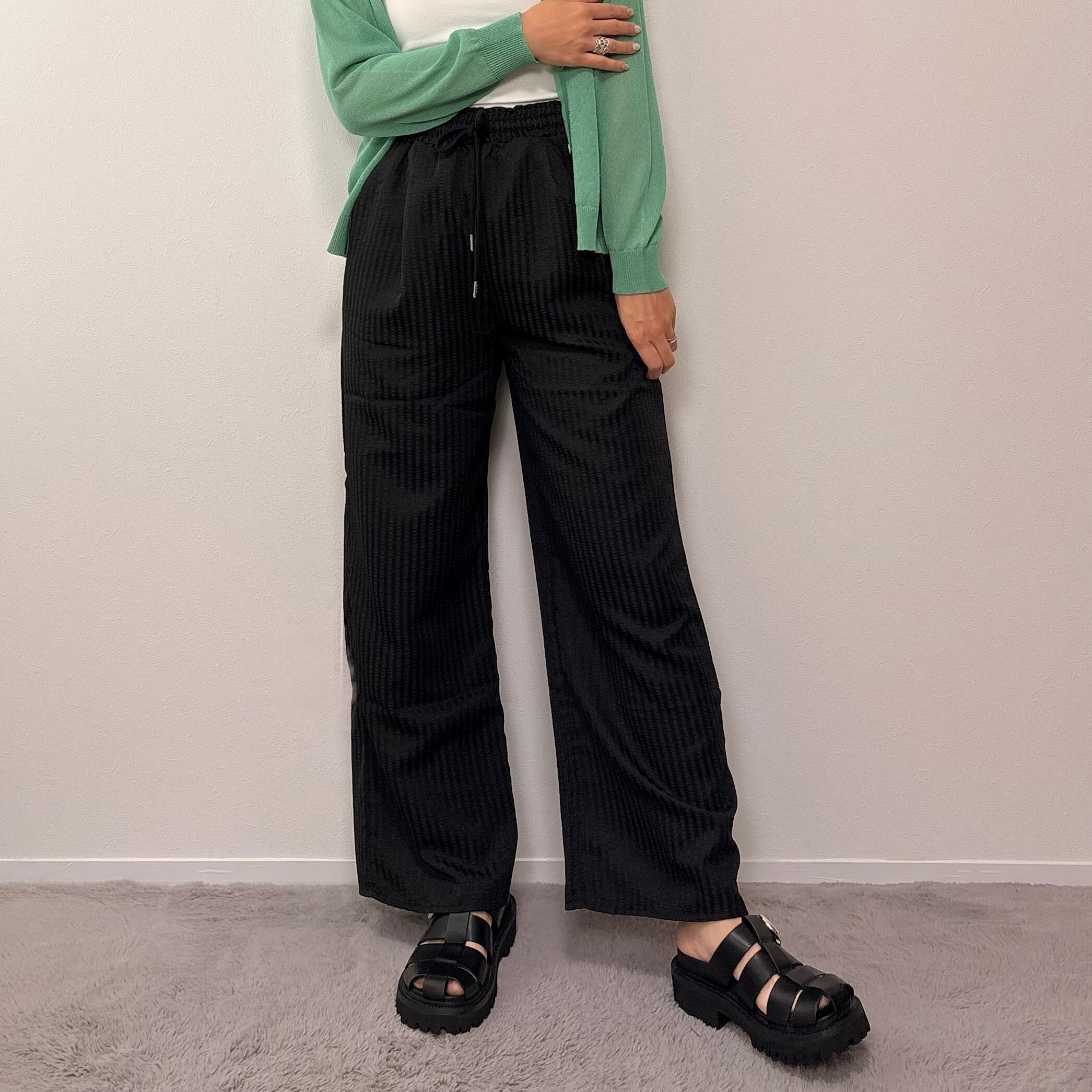 ウエストはゴム+ドローストリング仕様で、リラックス感のあるイージーデザインに。
