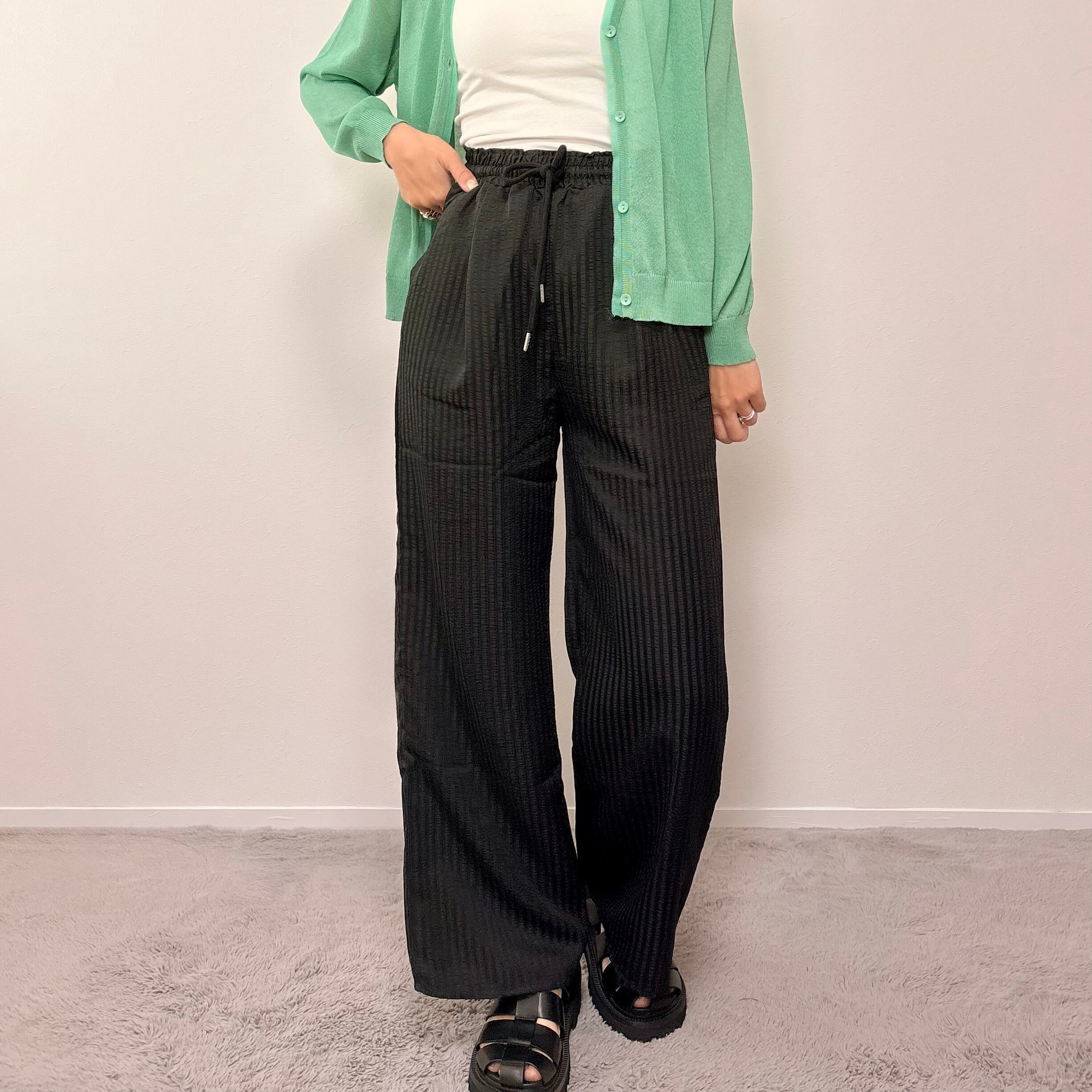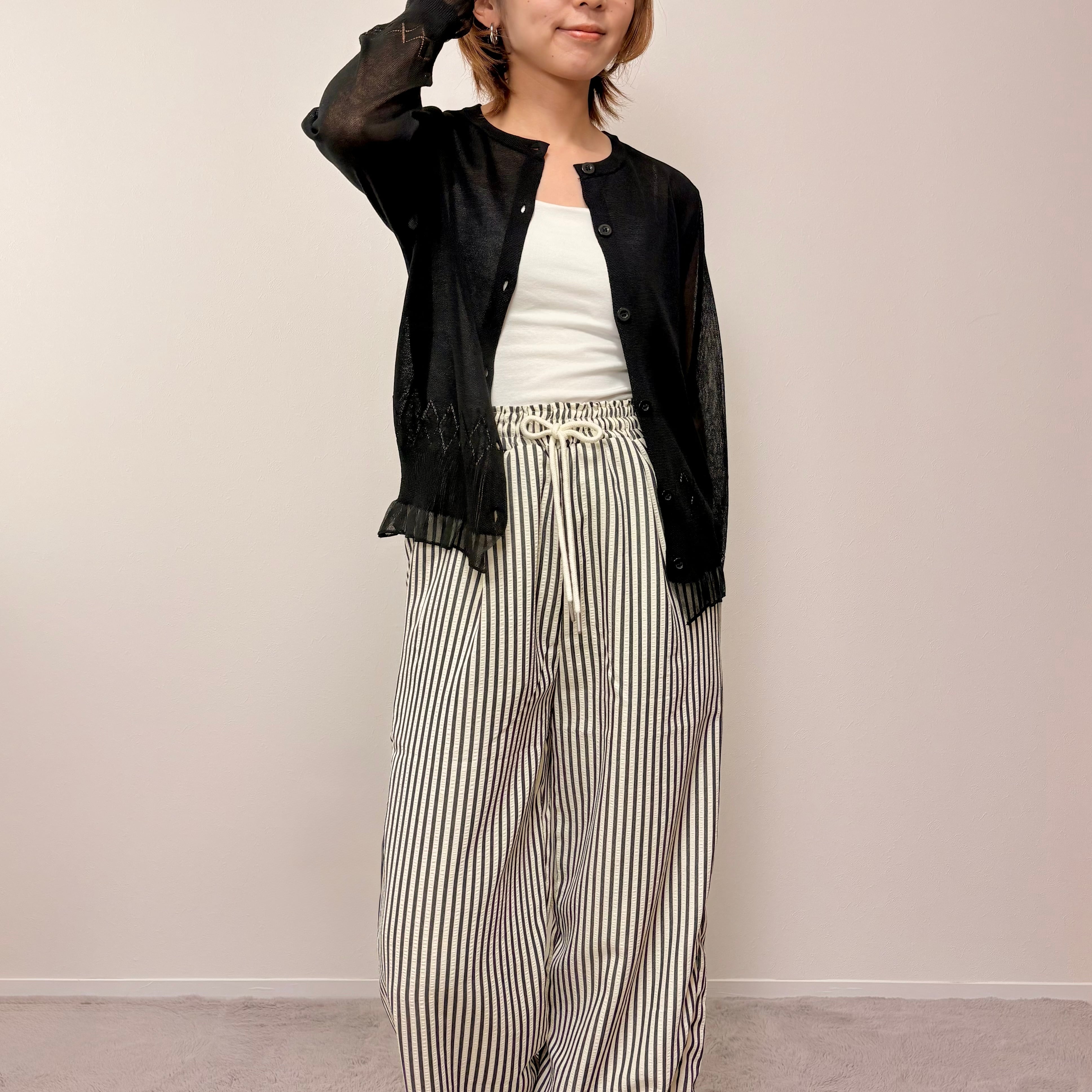 サンダルやスニーカー合わせで、夏らしい軽やかなスタイリングがおすすめです。