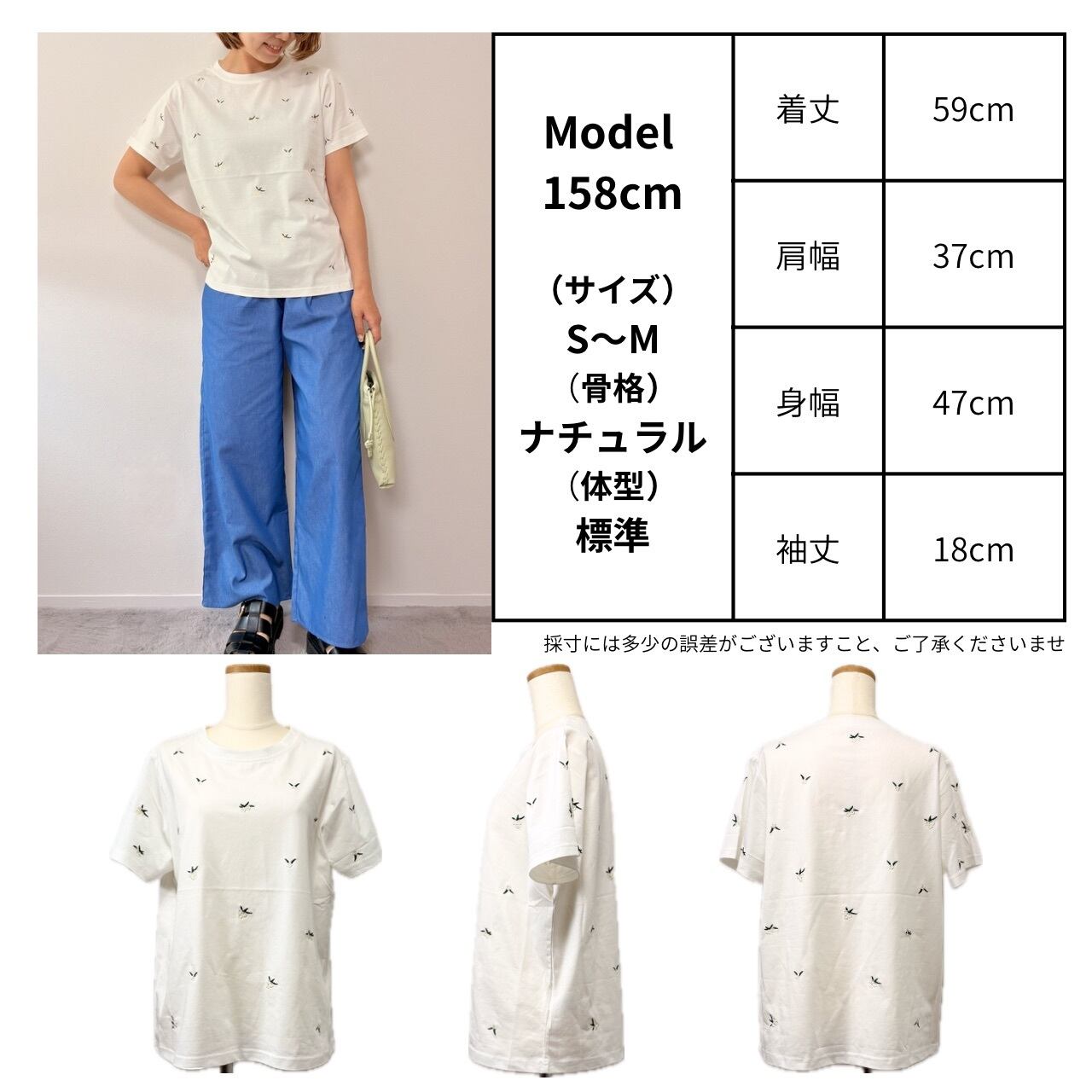 肩幅37cm / 身幅47cm / 袖丈18cm / 着丈59cm